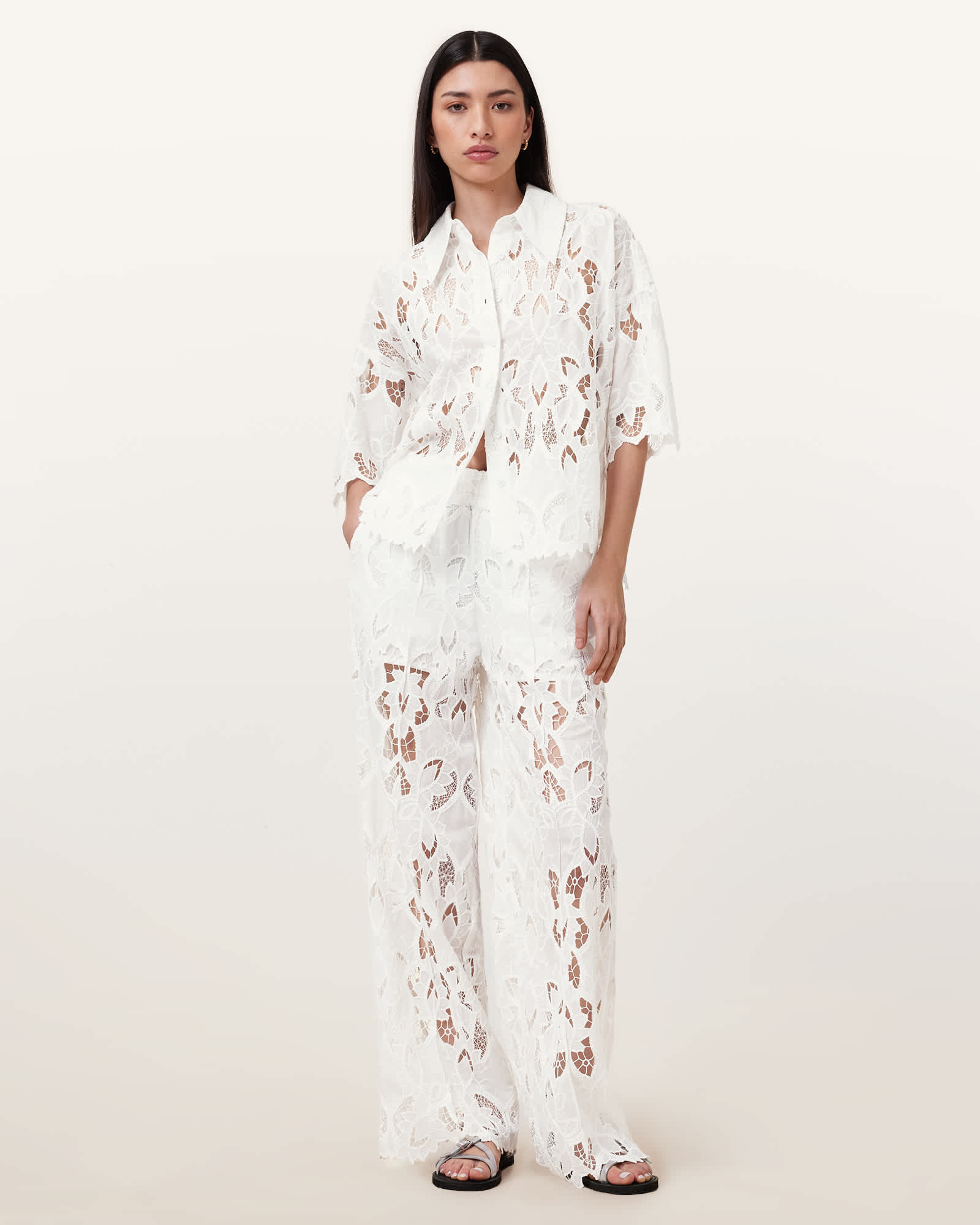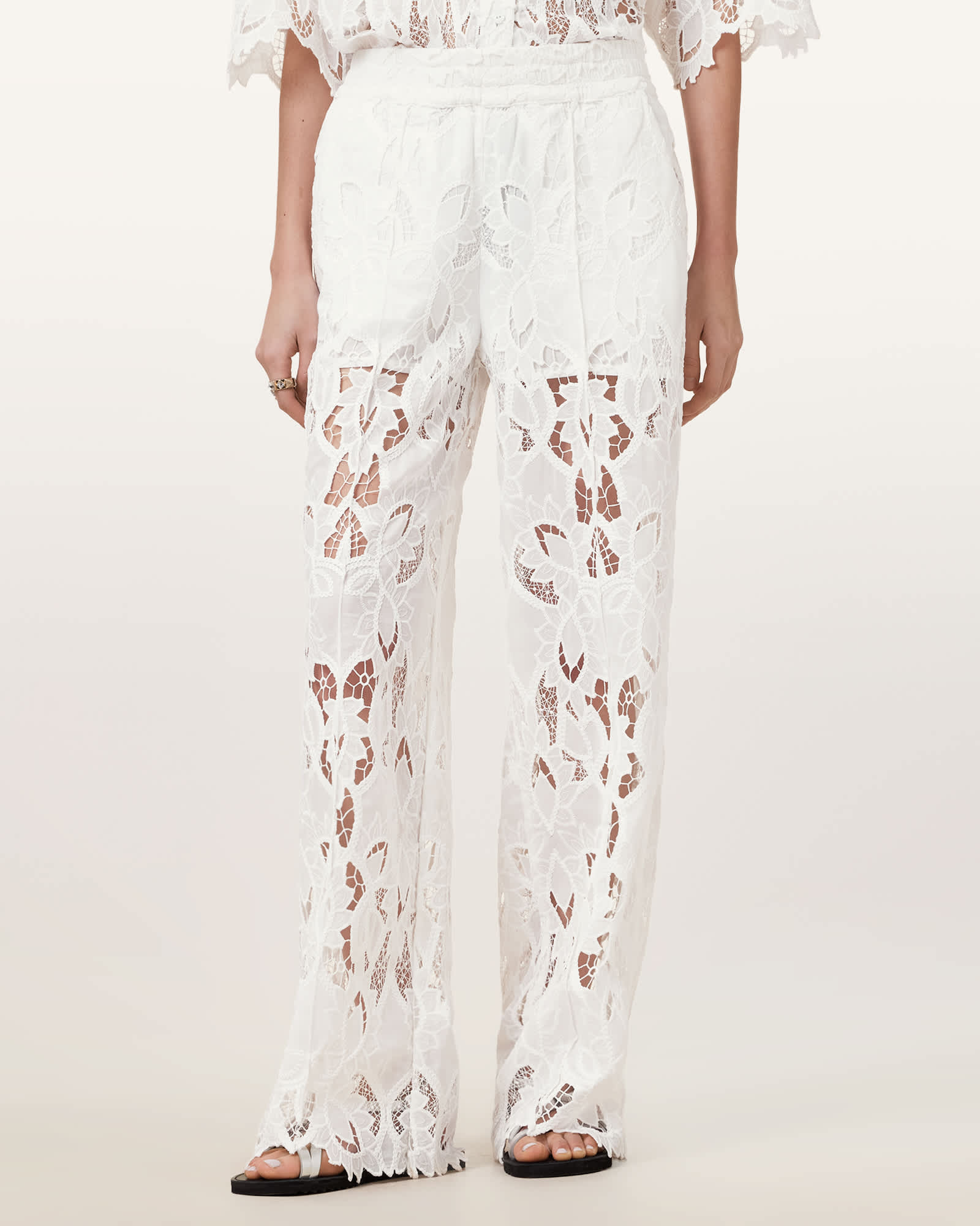 AllSaints Polyester Charli Embroidered Straight Fit Trousers