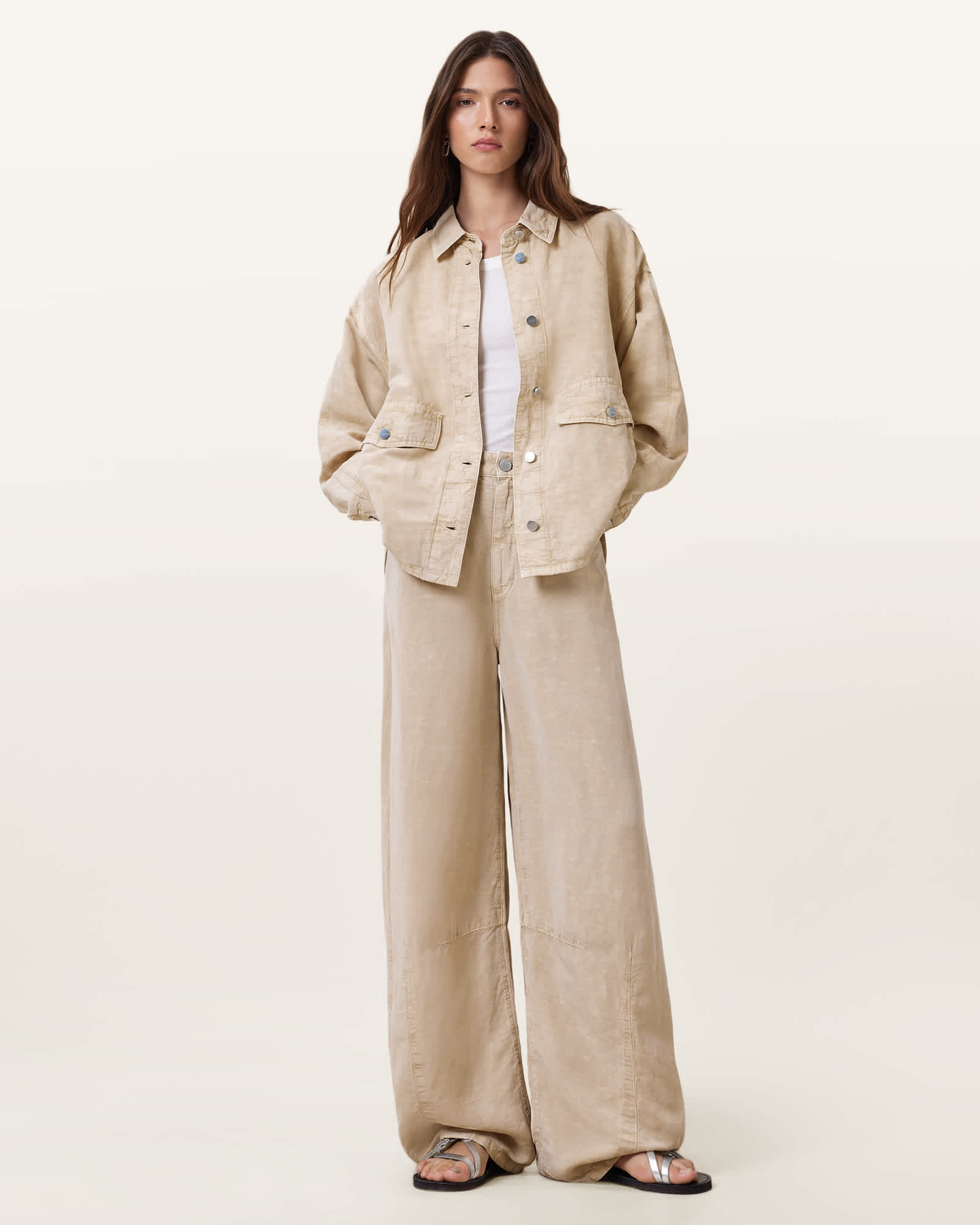 AllSaints Lyocell/Linen Hettie Oversized Linen Blend Shacket | ricciano UNITED KINGDOM