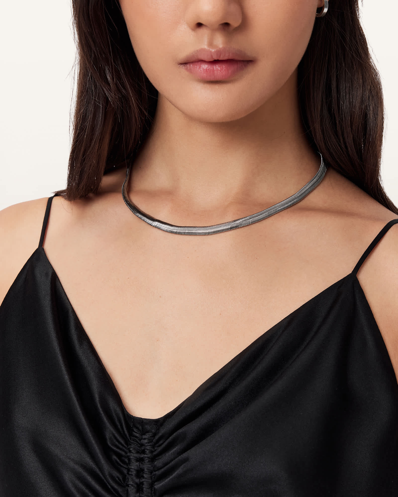 Lobster clasp closure Flat snake chain necklace AllSaints engraved logo, Lobster clasp closure, Flat snake chain necklace , AllSaints engraved logo