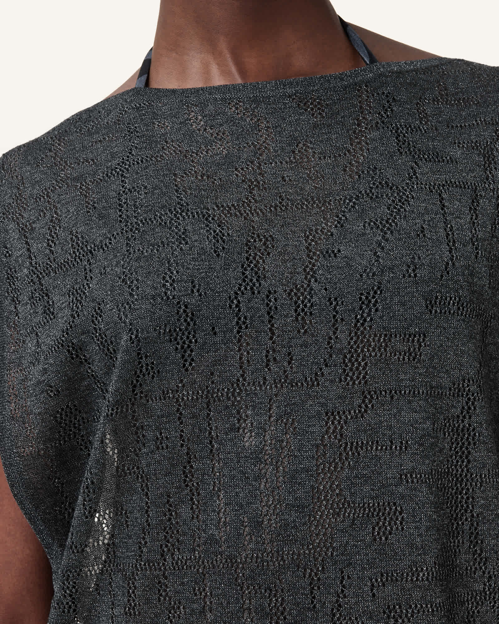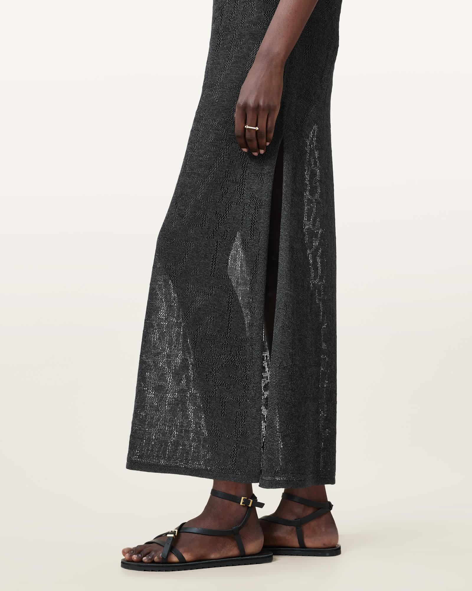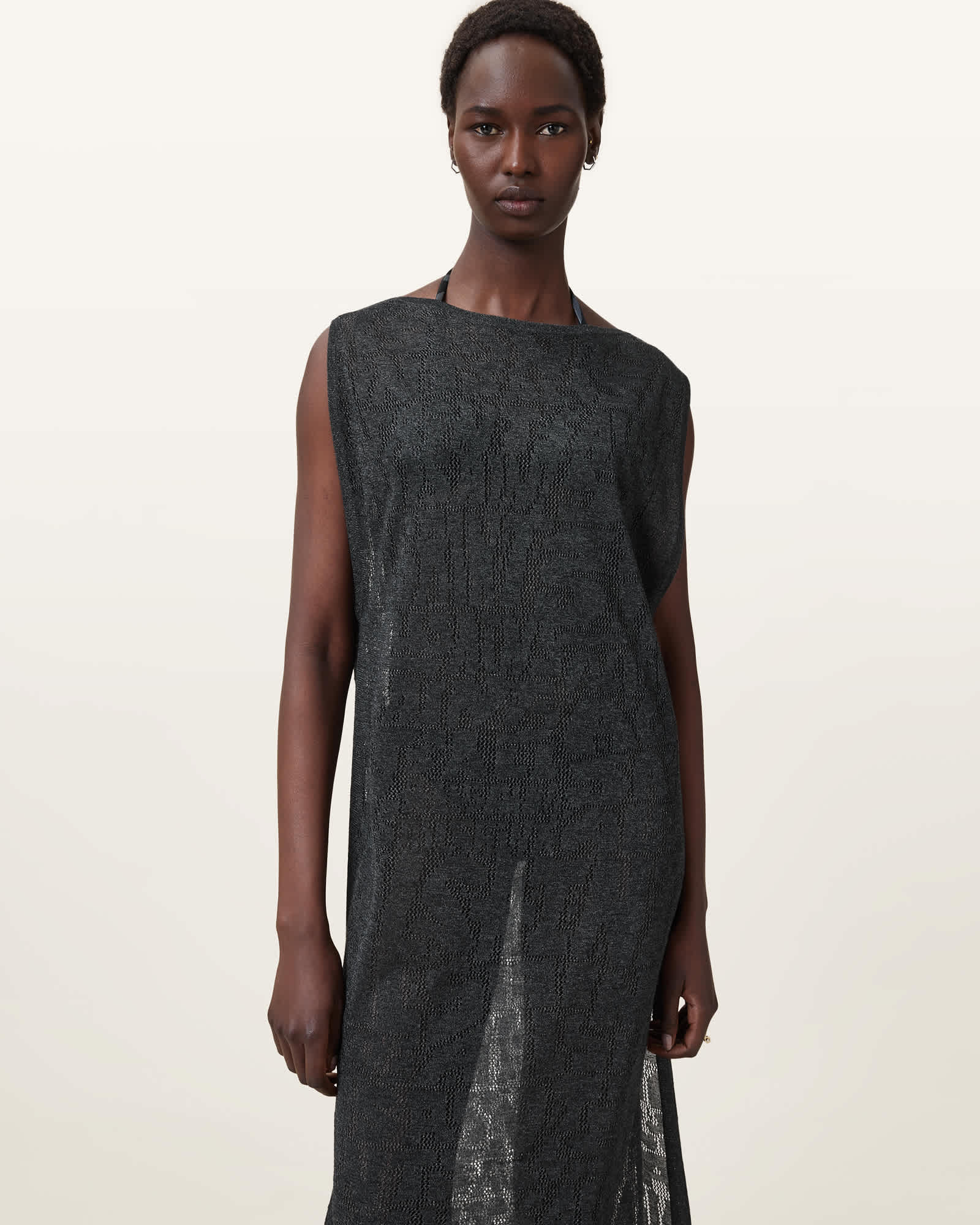 This dress is designed to a relaxed fit Pullover Boat neck Sleeveless Maxi length AllSaints jacquard pattern Side slit Unlined Knitted Lightweight, This dress is designed to a relaxed fit, ,