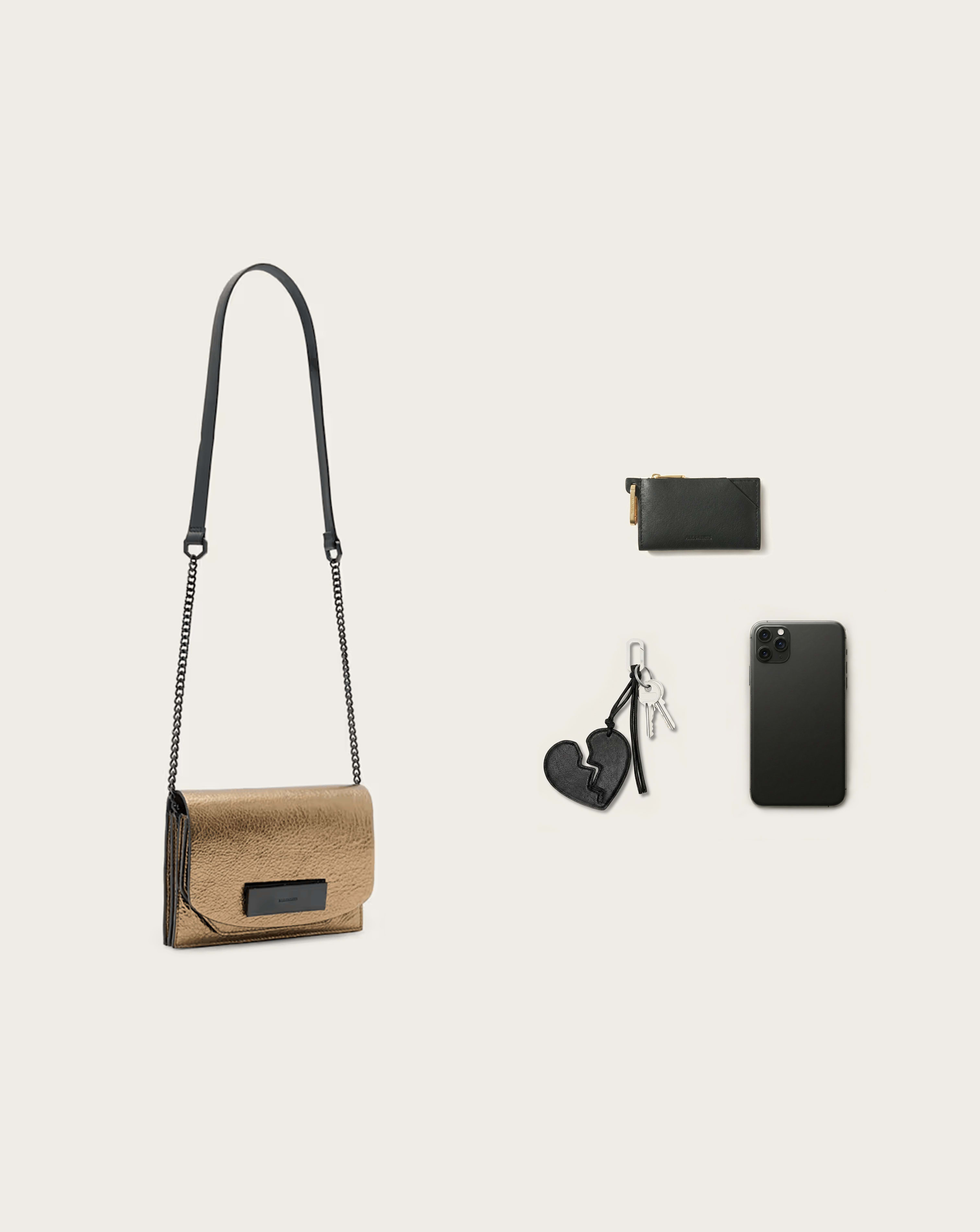 AllSaints Leather Etta Metallic Leather Clutch Bag | ricciano UNITED KINGDOM