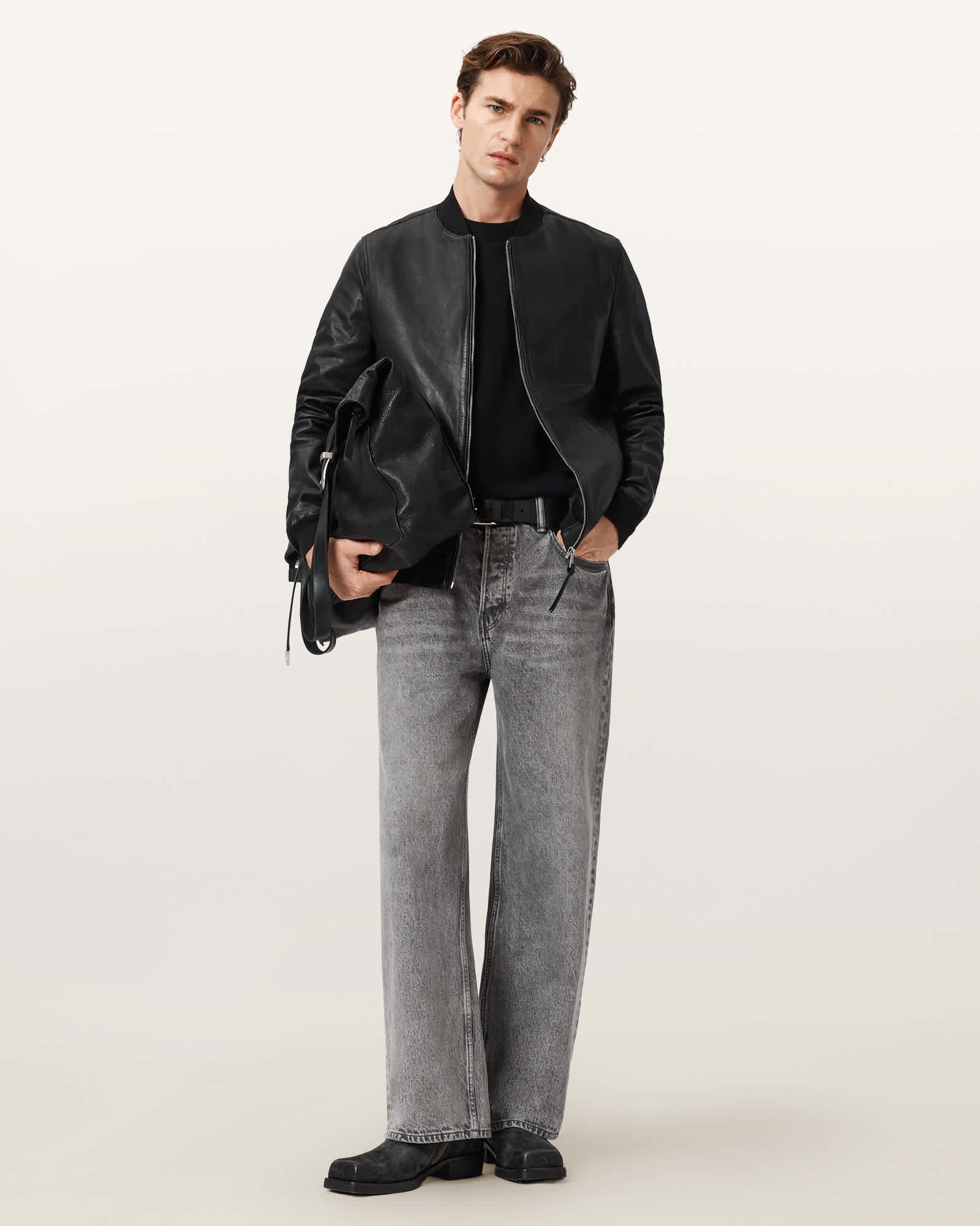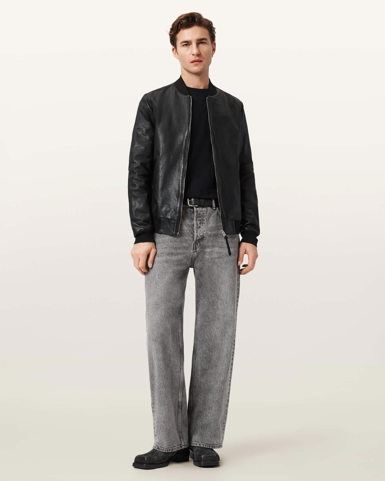 AllSaints Leather Morten Leather Bomber Jacket | ricciano UNITED KINGDOM