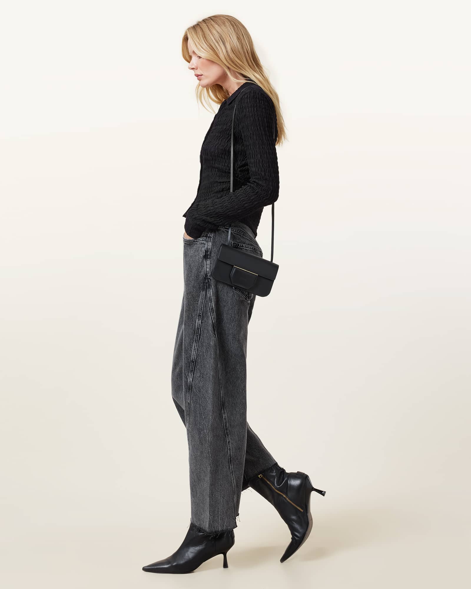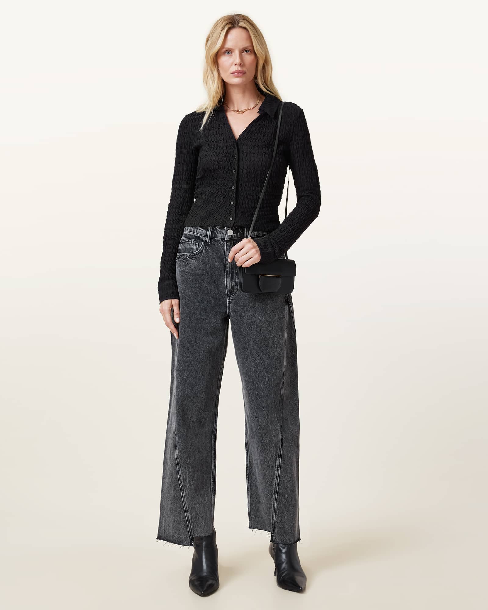 AllSaints Connie Slim Fit Open Neck Shirt,, Black