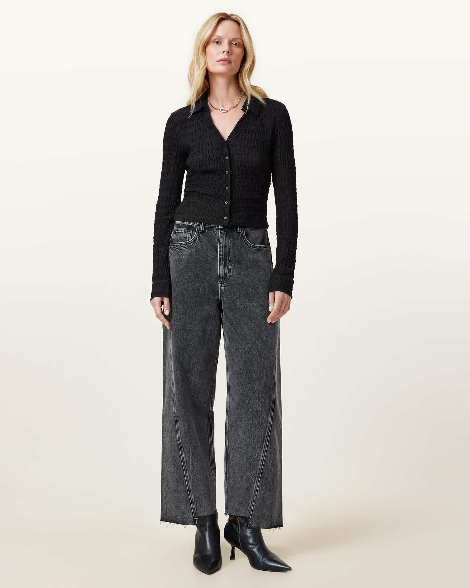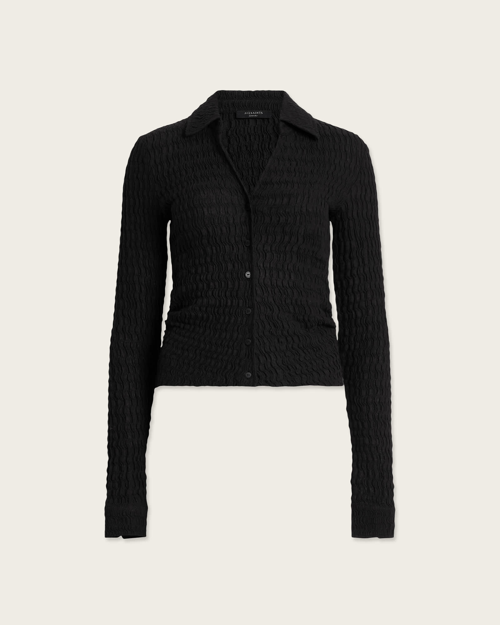 AllSaints Connie Slim Fit Open Neck Shirt,, Black | ricciano DEUTSCHLAND