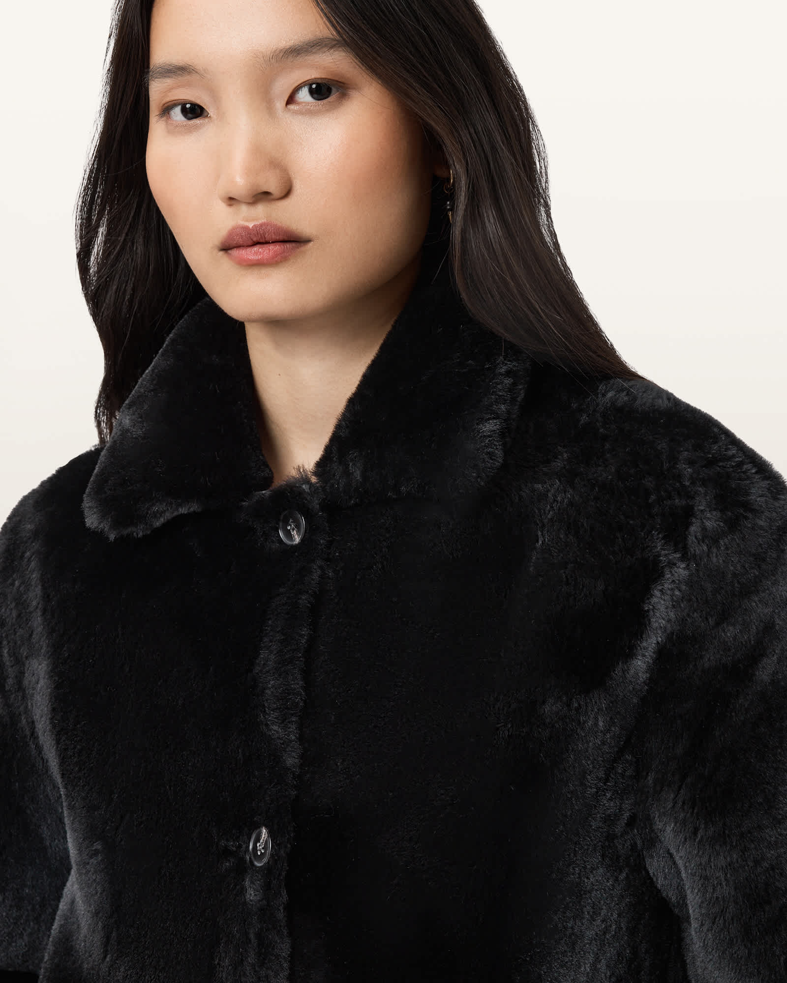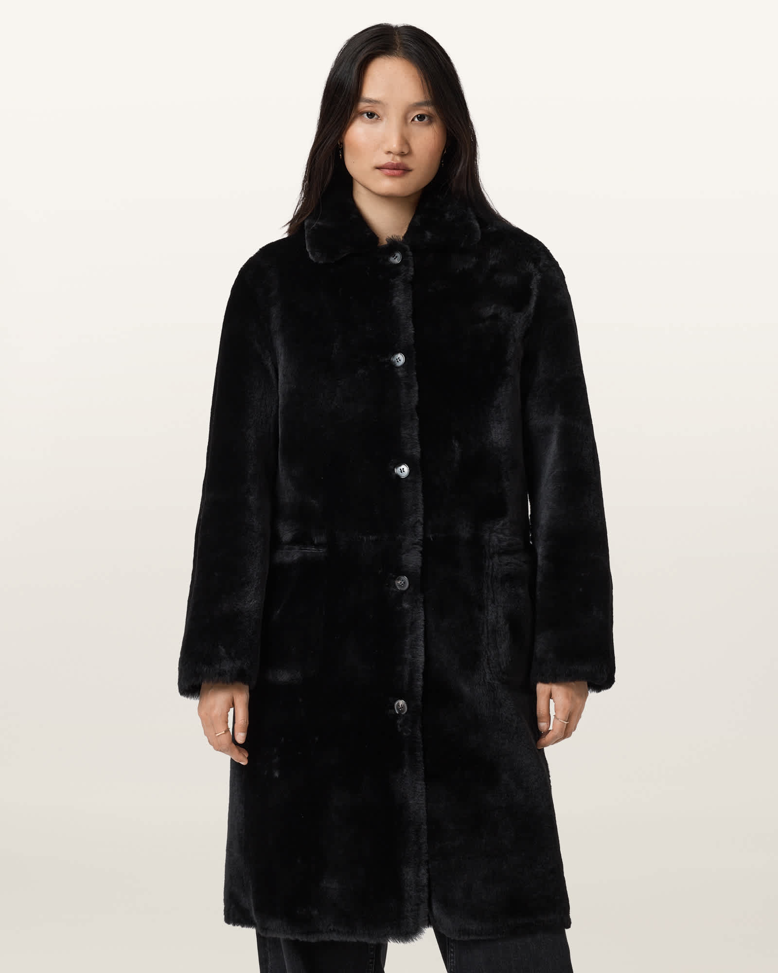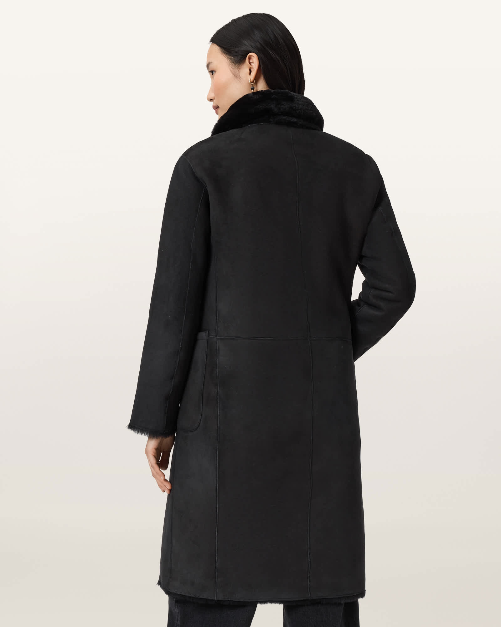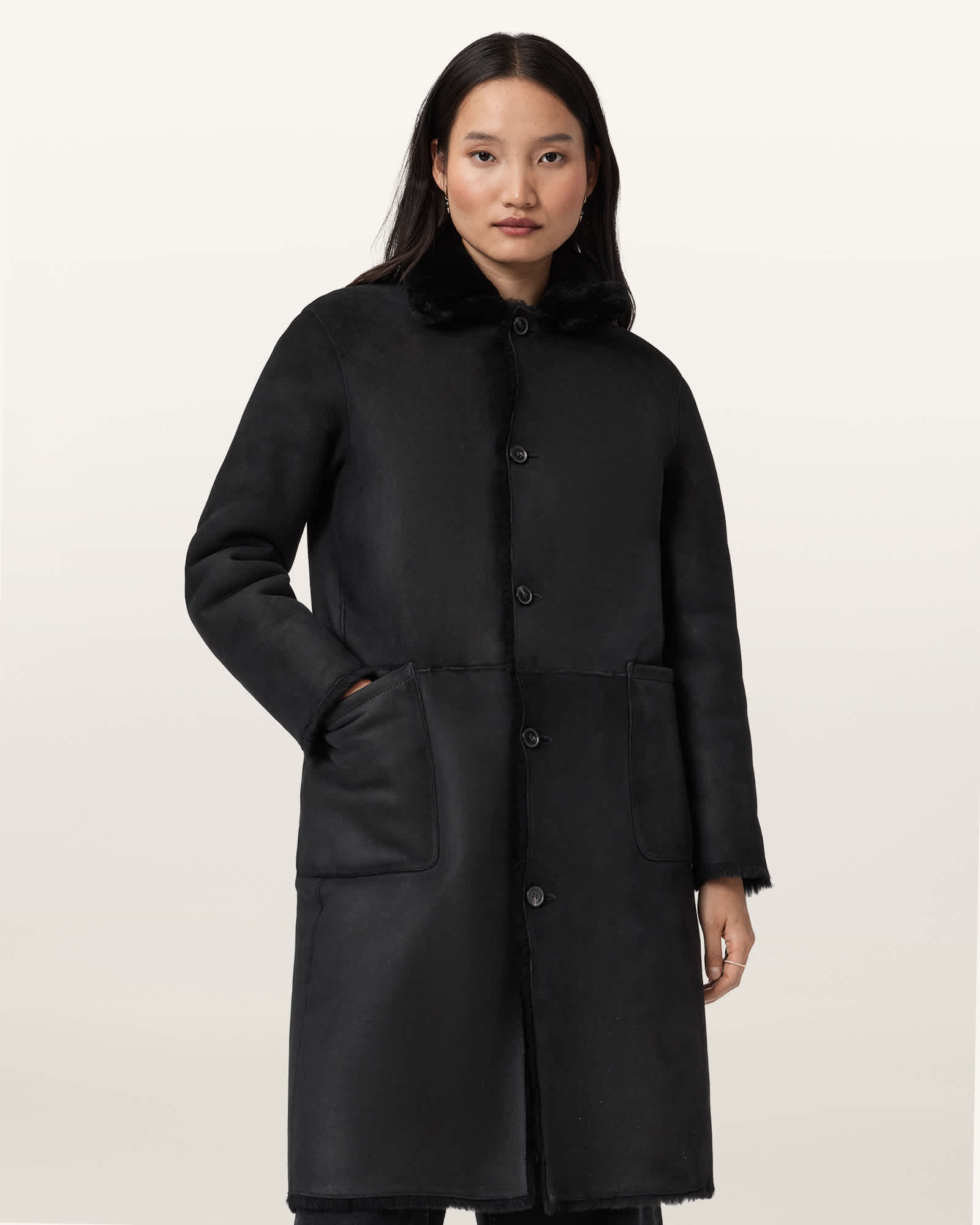 AllSaints Serra Reversible Shearling Coat,, Black | ricciano DEUTSCHLAND