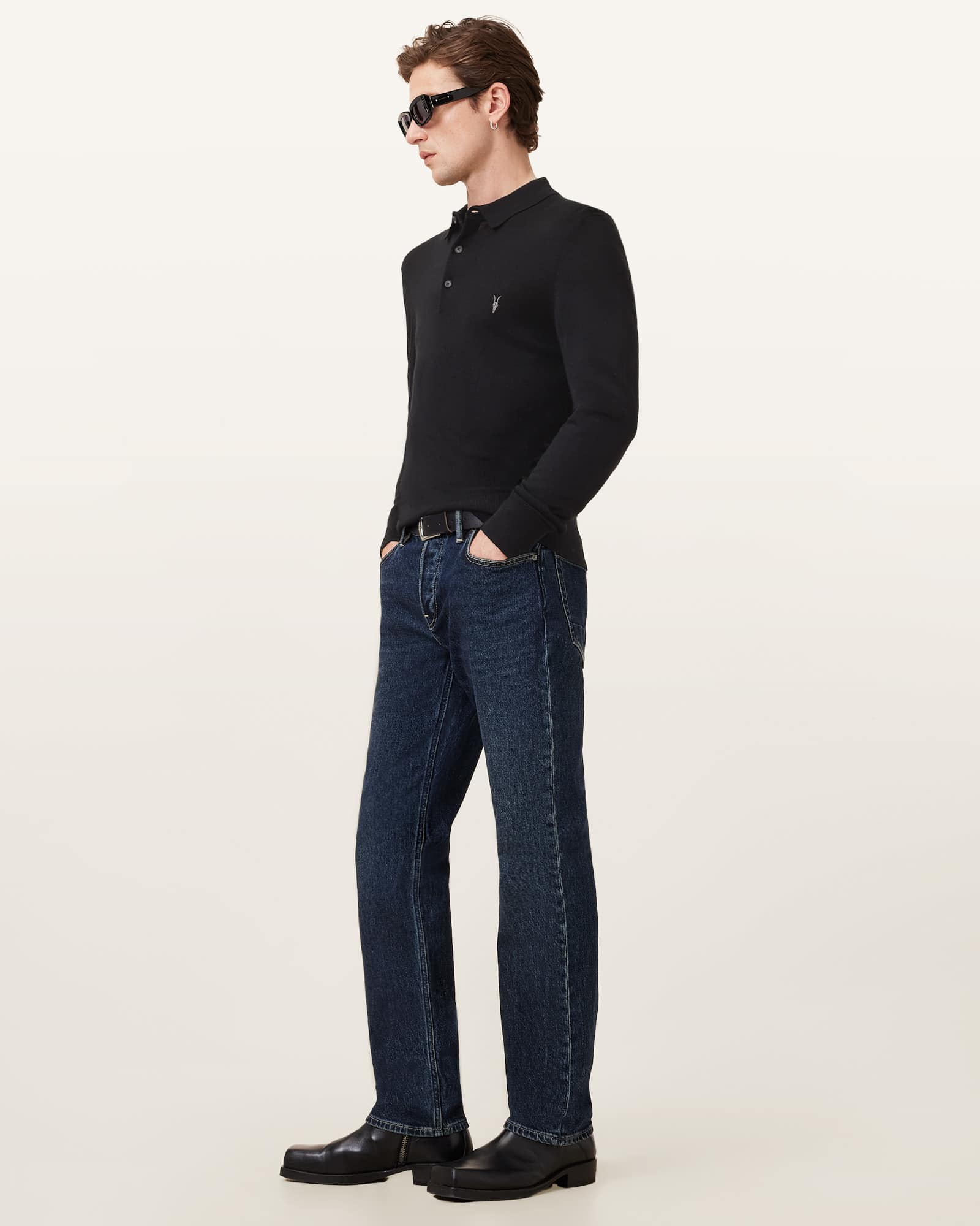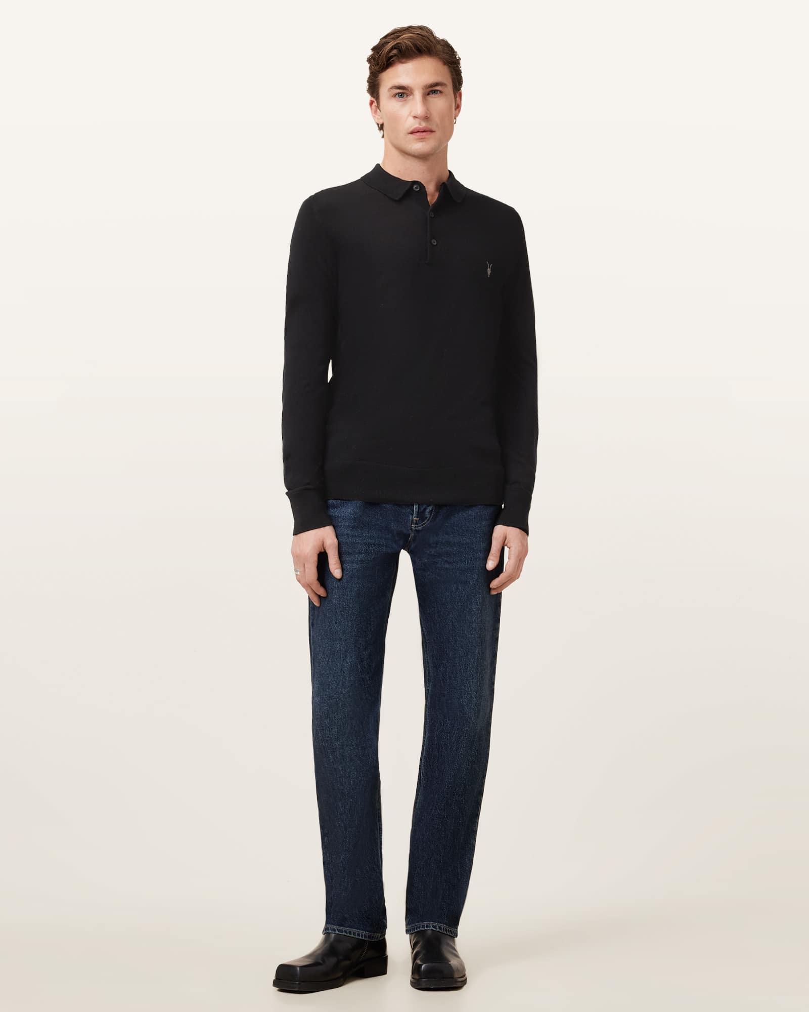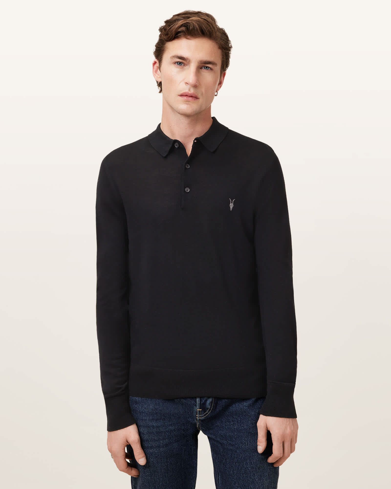 AllSaints Mode Merino Long Sleeve Ramskull Polo Shirt,, Blue | ricciano DEUTSCHLAND