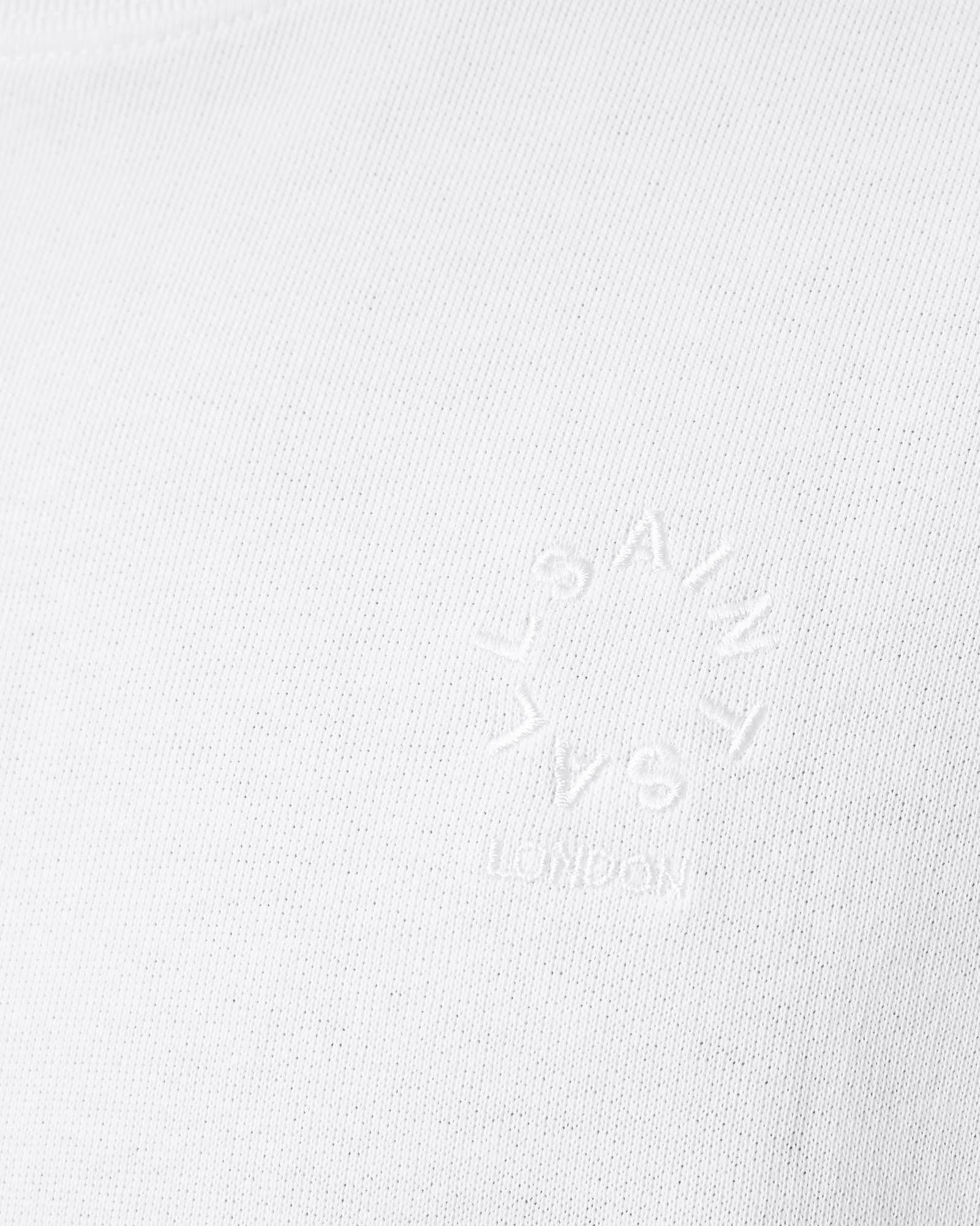 Pullover Crew neck Short sleeves Interior loopback texture Thicker ribbed neckband Twin needle stitch detailing All Saints embroidered logo Model is 6'1" and wearing size Medium
