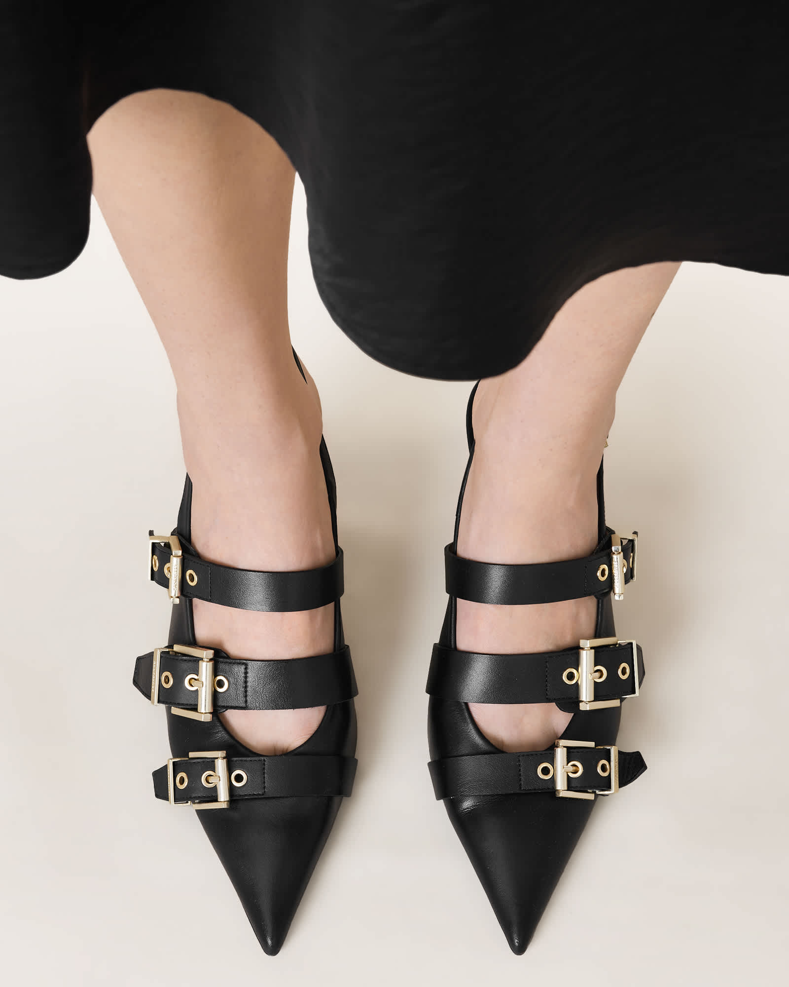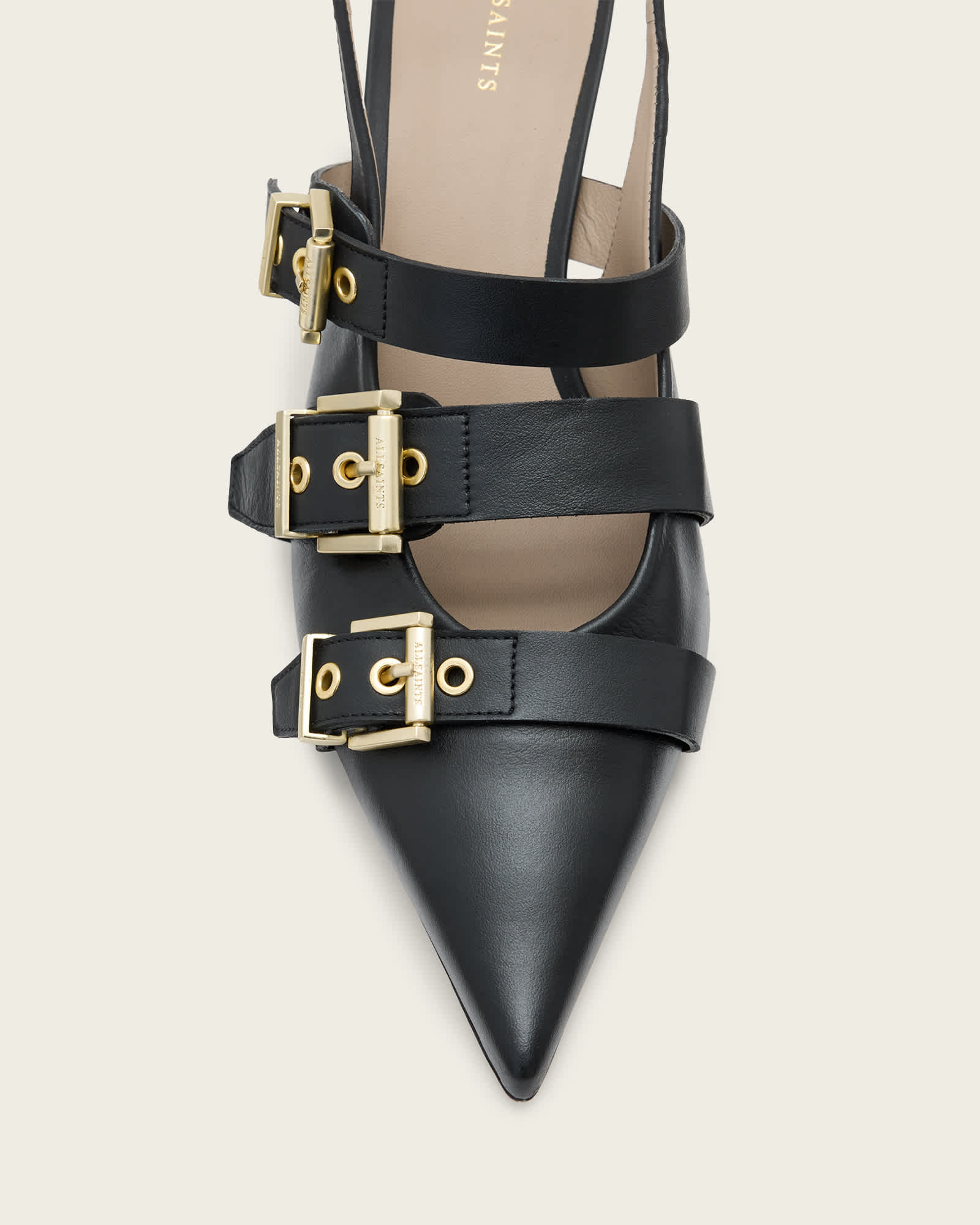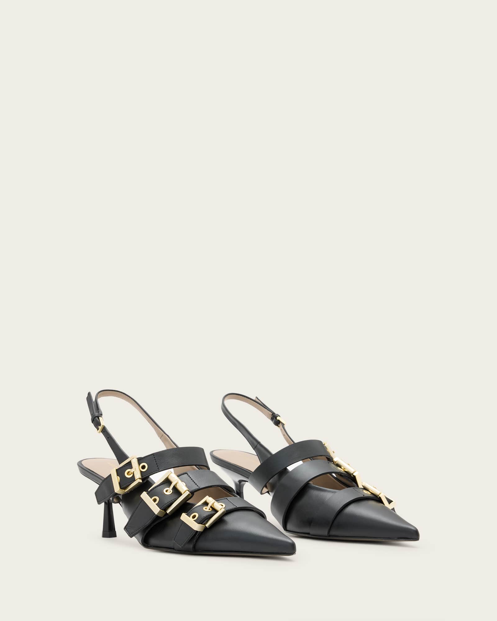 AllSaints Vivian Leather Buckle Slingback Heels,, Black | ricciano DEUTSCHLAND