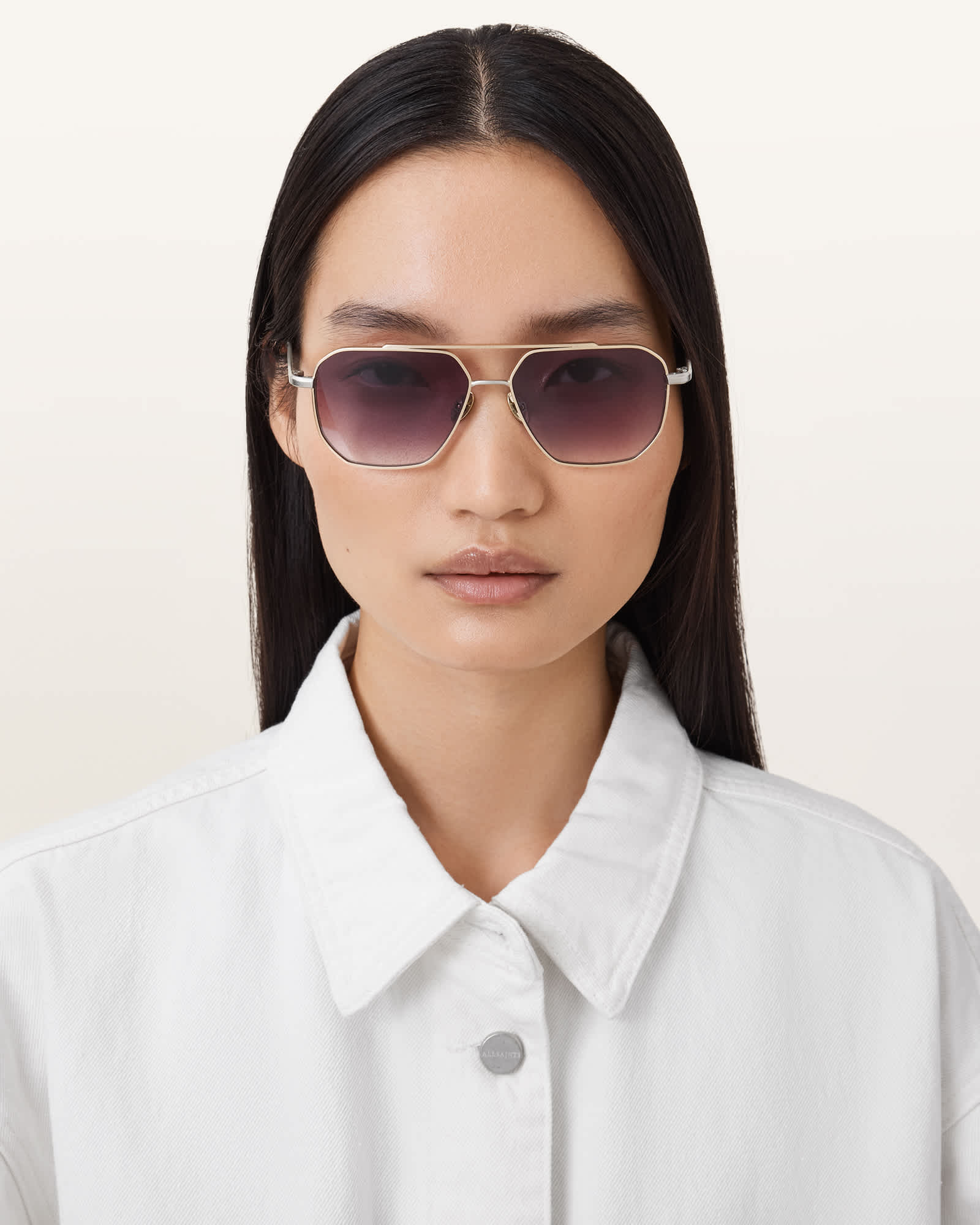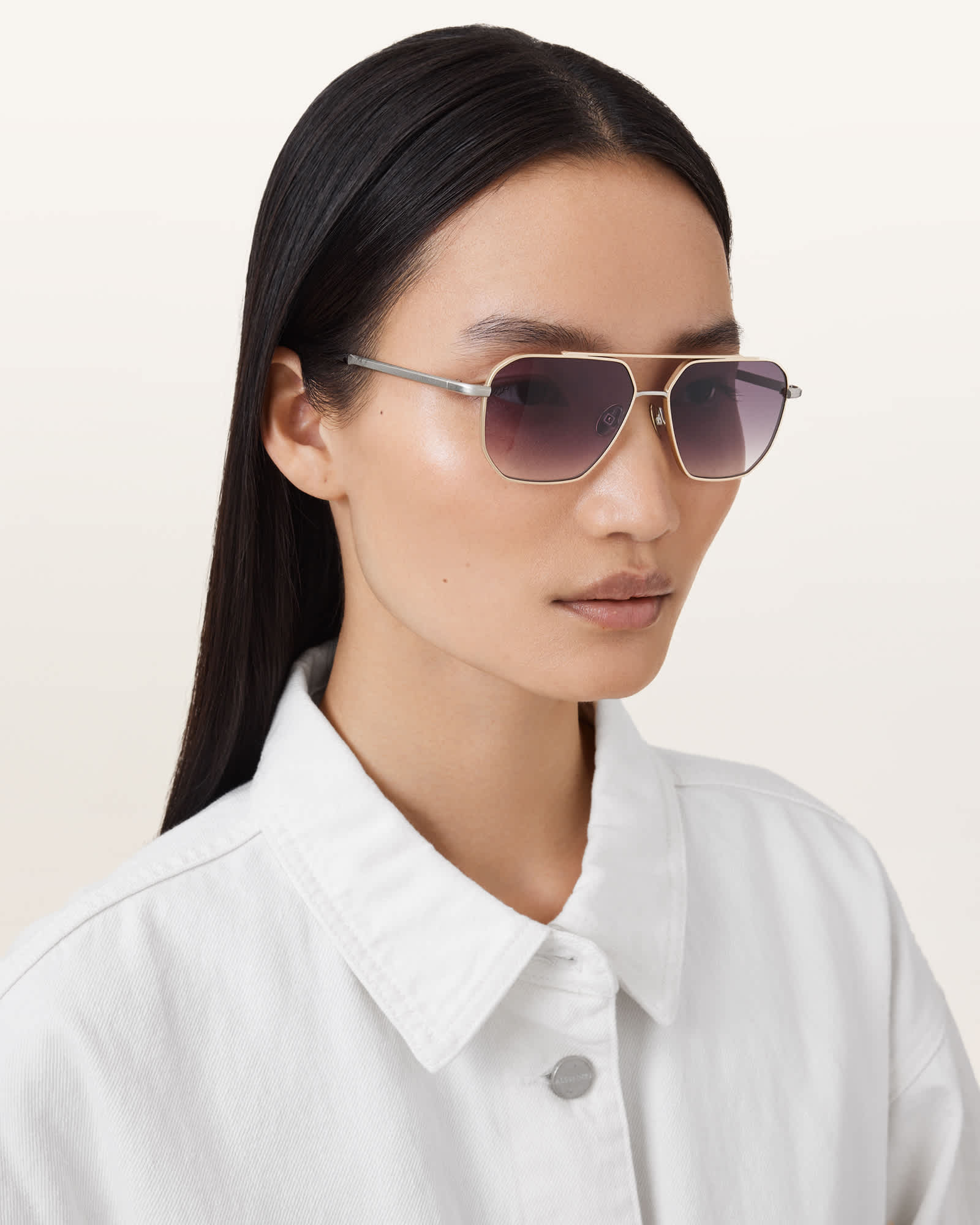 AllSaints Dune Navigator Sunglasses,, Warm Brass