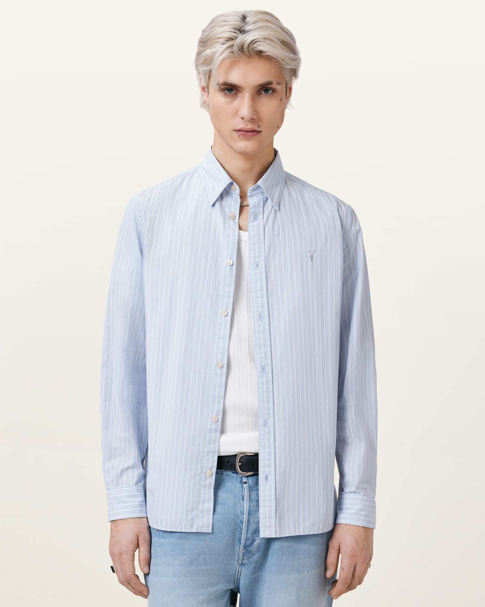 AllSaints Saint Long Sleeve Ramskull Cotton Shirt,, Willow Blue | ricciano DEUTSCHLAND