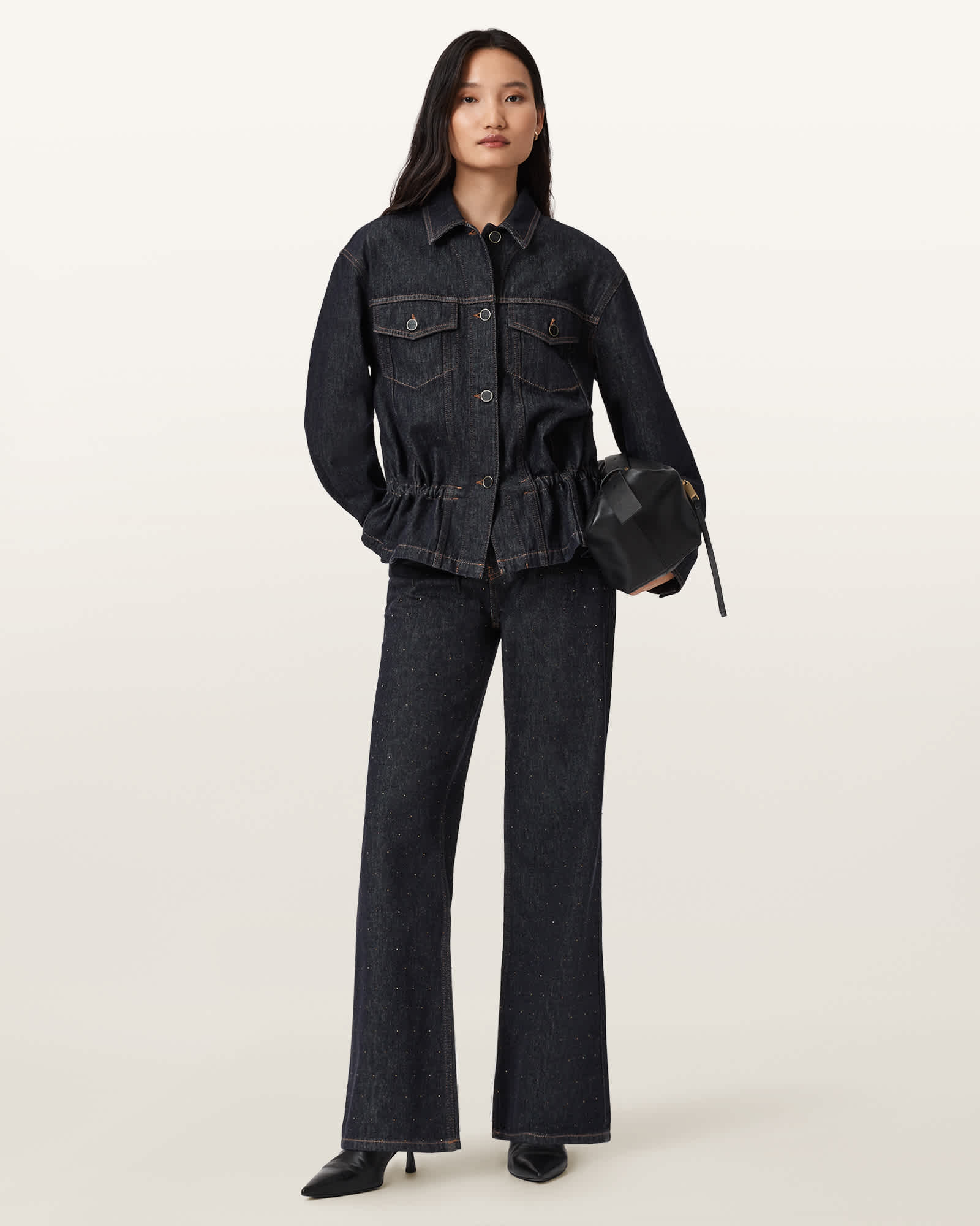 AllSaints Ember Sparkle Embellished Jeans,, Raw Indigo Blue