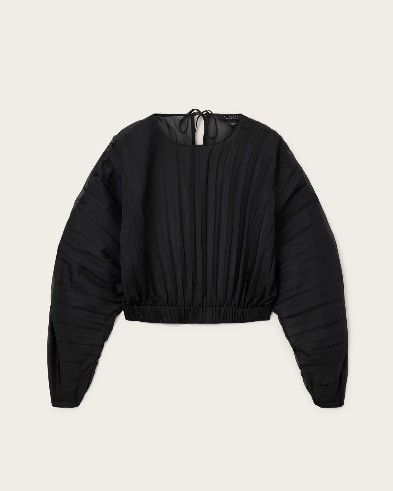 AllSaints Micaela Pleated Sheer Top,, Black | ricciano DEUTSCHLAND