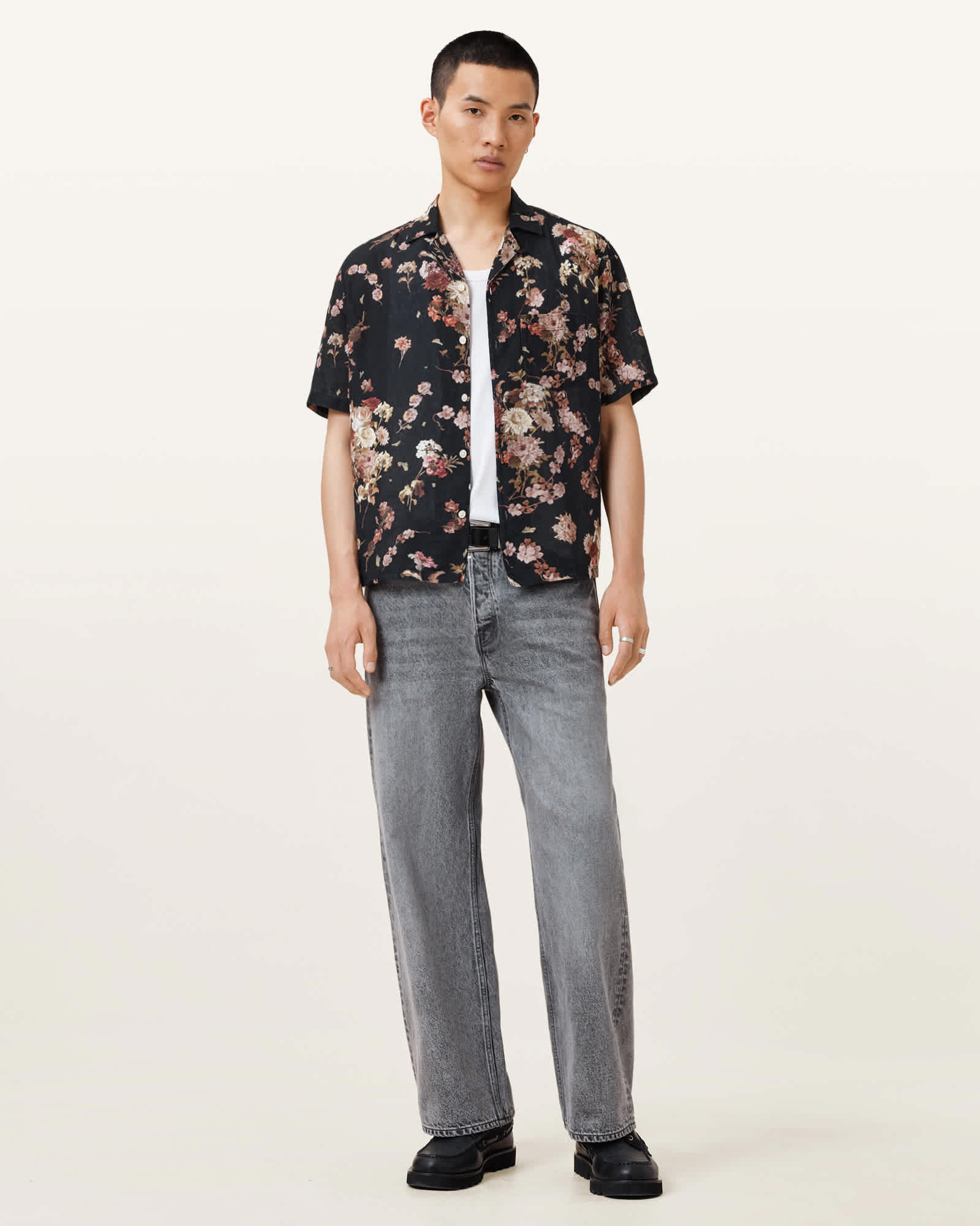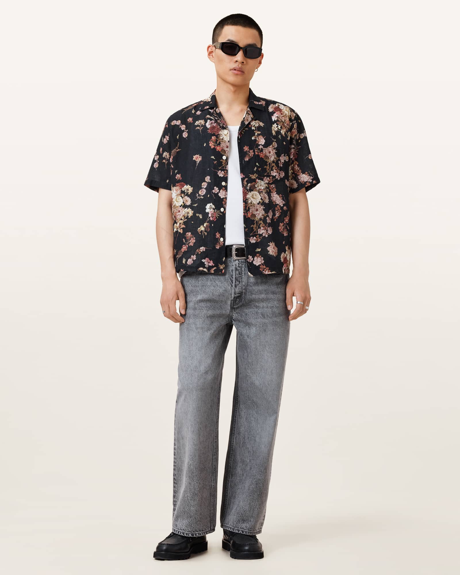 AllSaints Armada Floral Linen Shirt,, Jet Black | ricciano DEUTSCHLAND
