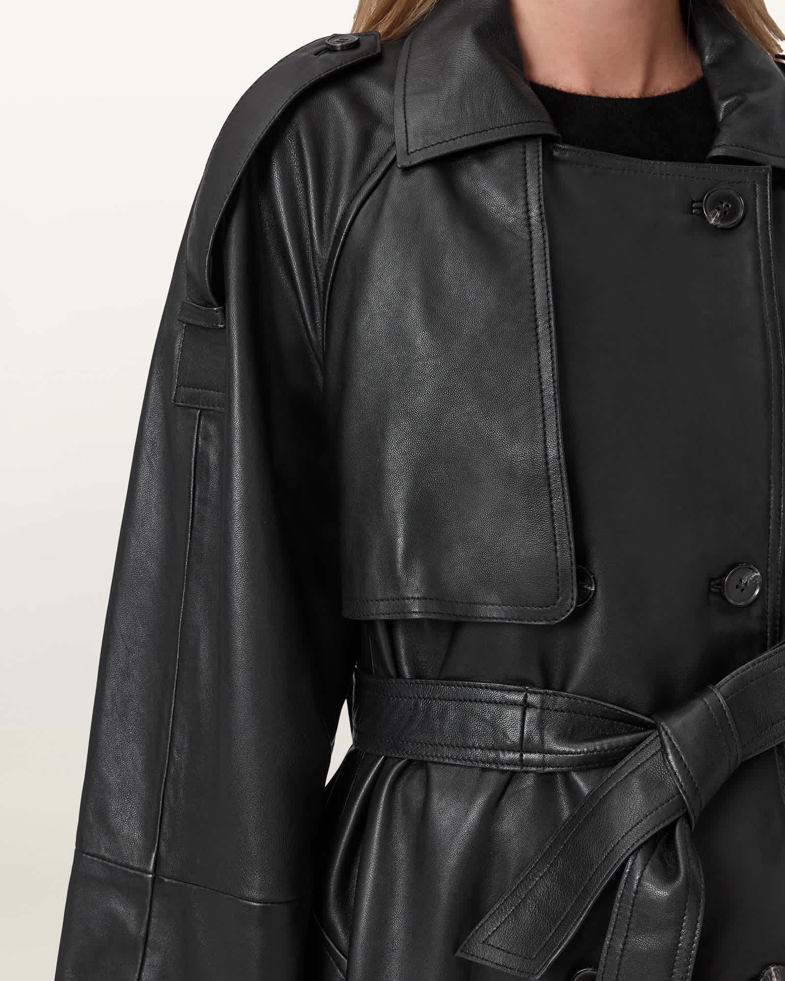 AllSaints Reed Leather Trench,, Black | ricciano DEUTSCHLAND