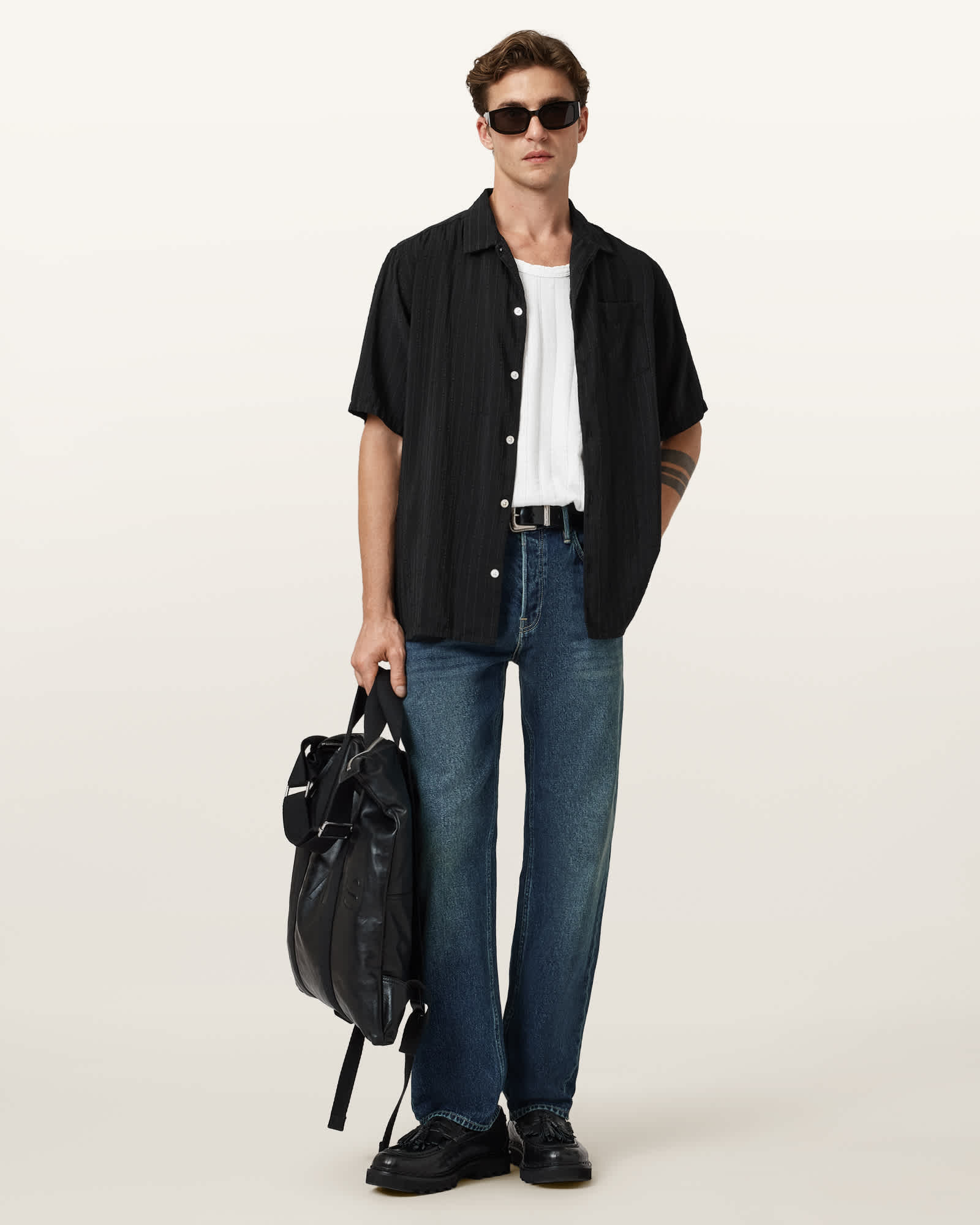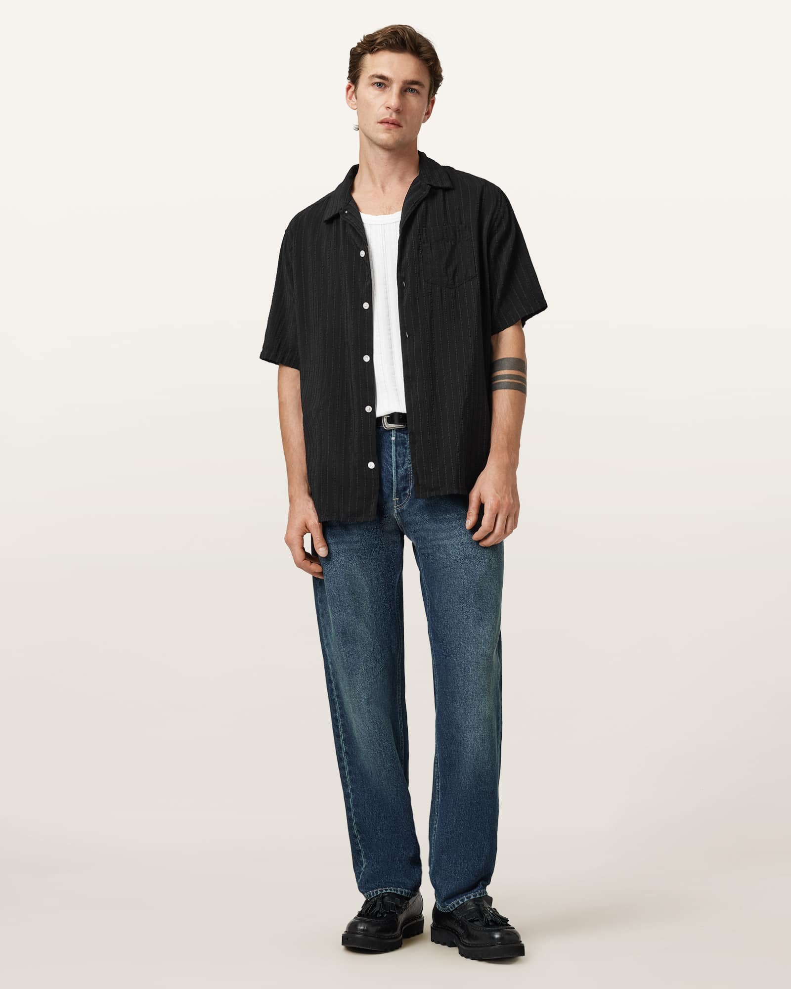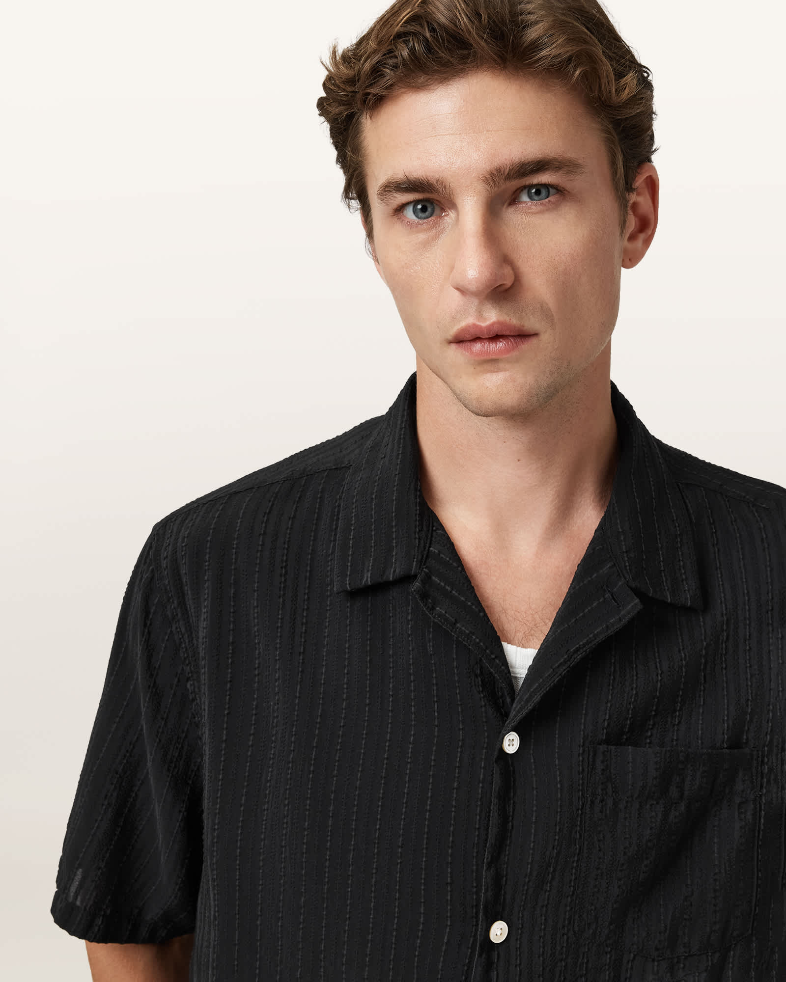 AllSaints Perry Short Sleeve Striped Shirt,, Black | ricciano DEUTSCHLAND