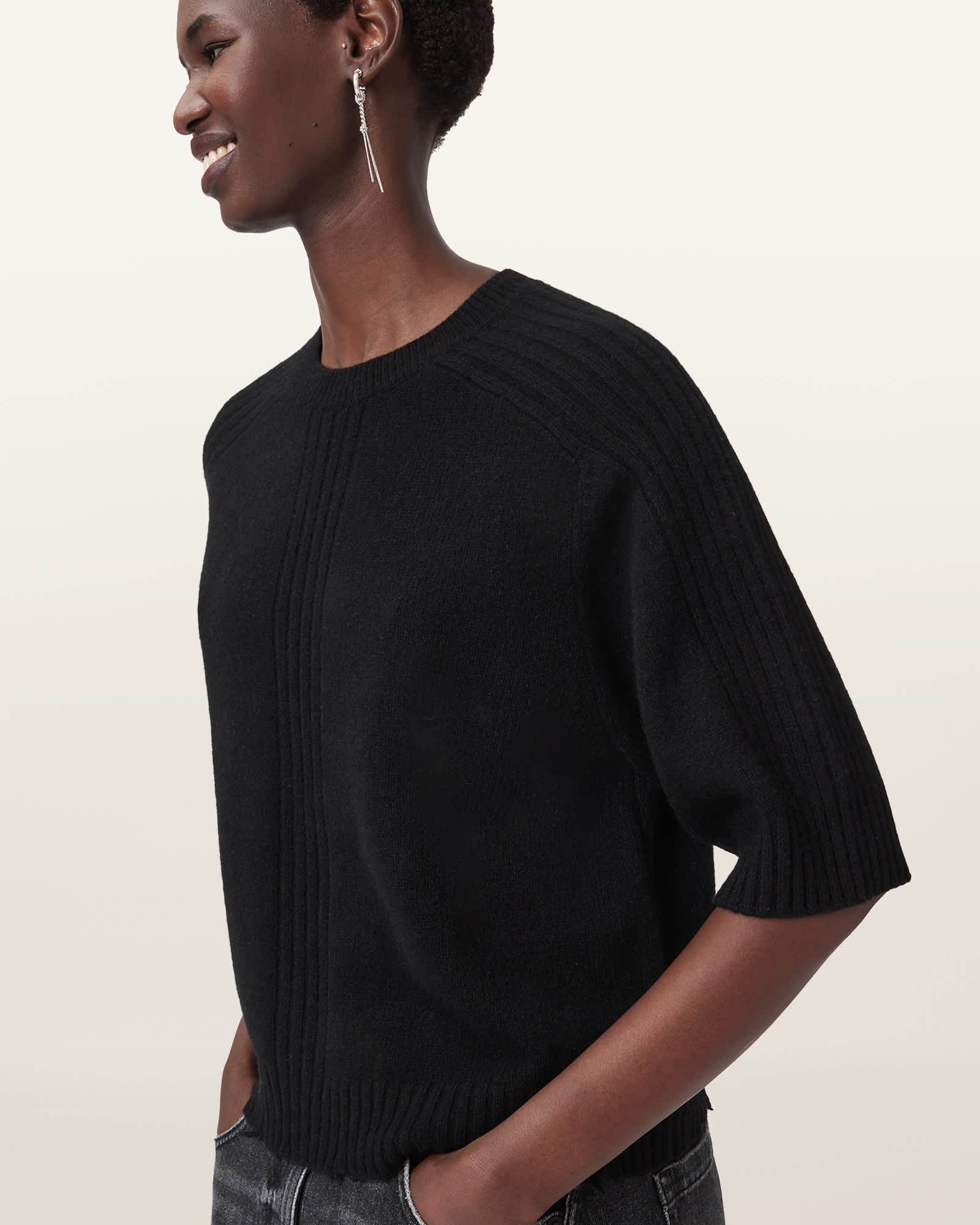 AllSaints Nix Cashmere Relaxed T-Shirt,, Black | ricciano DEUTSCHLAND