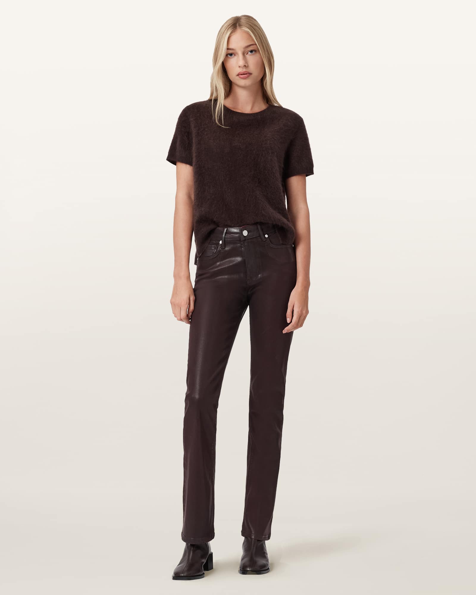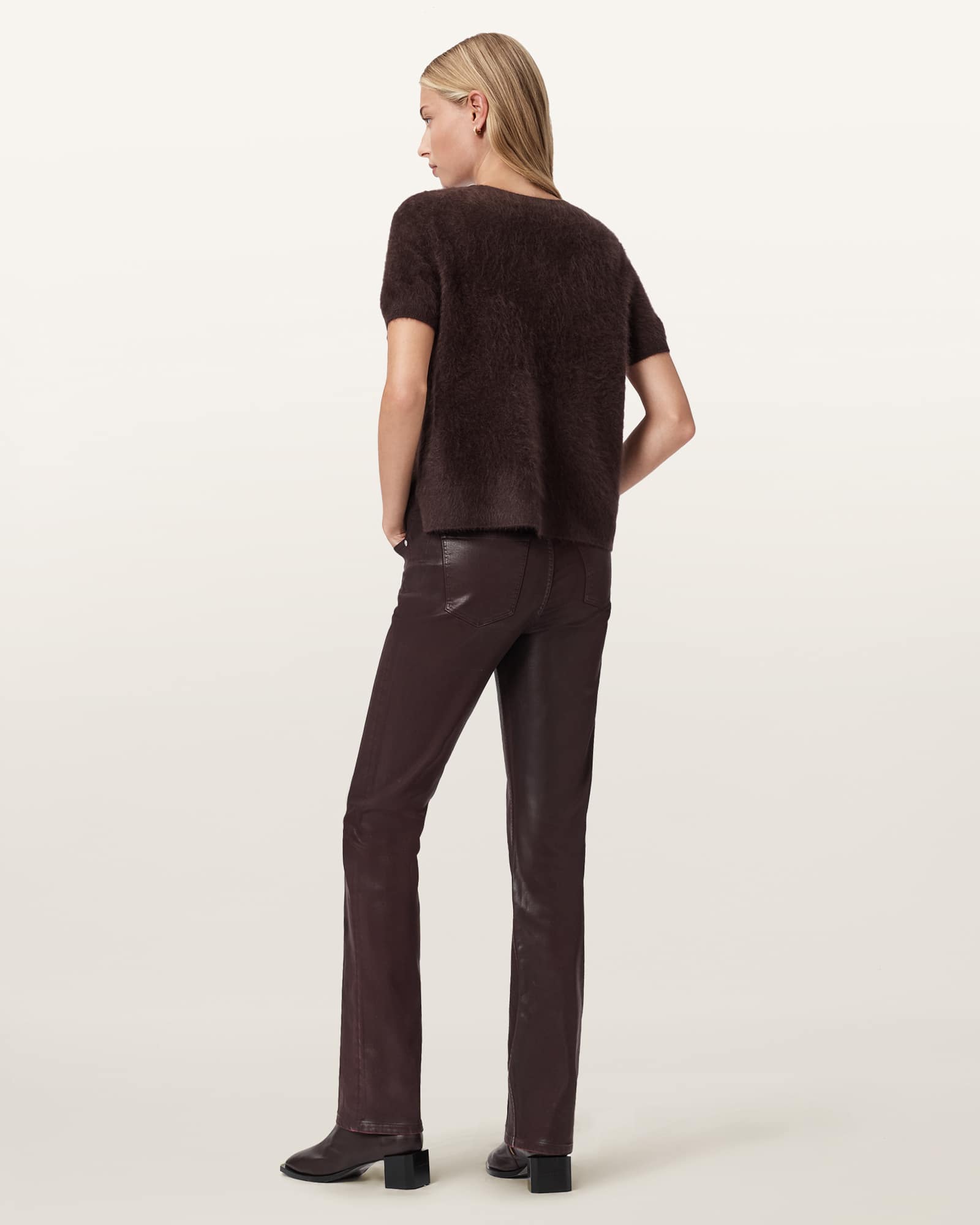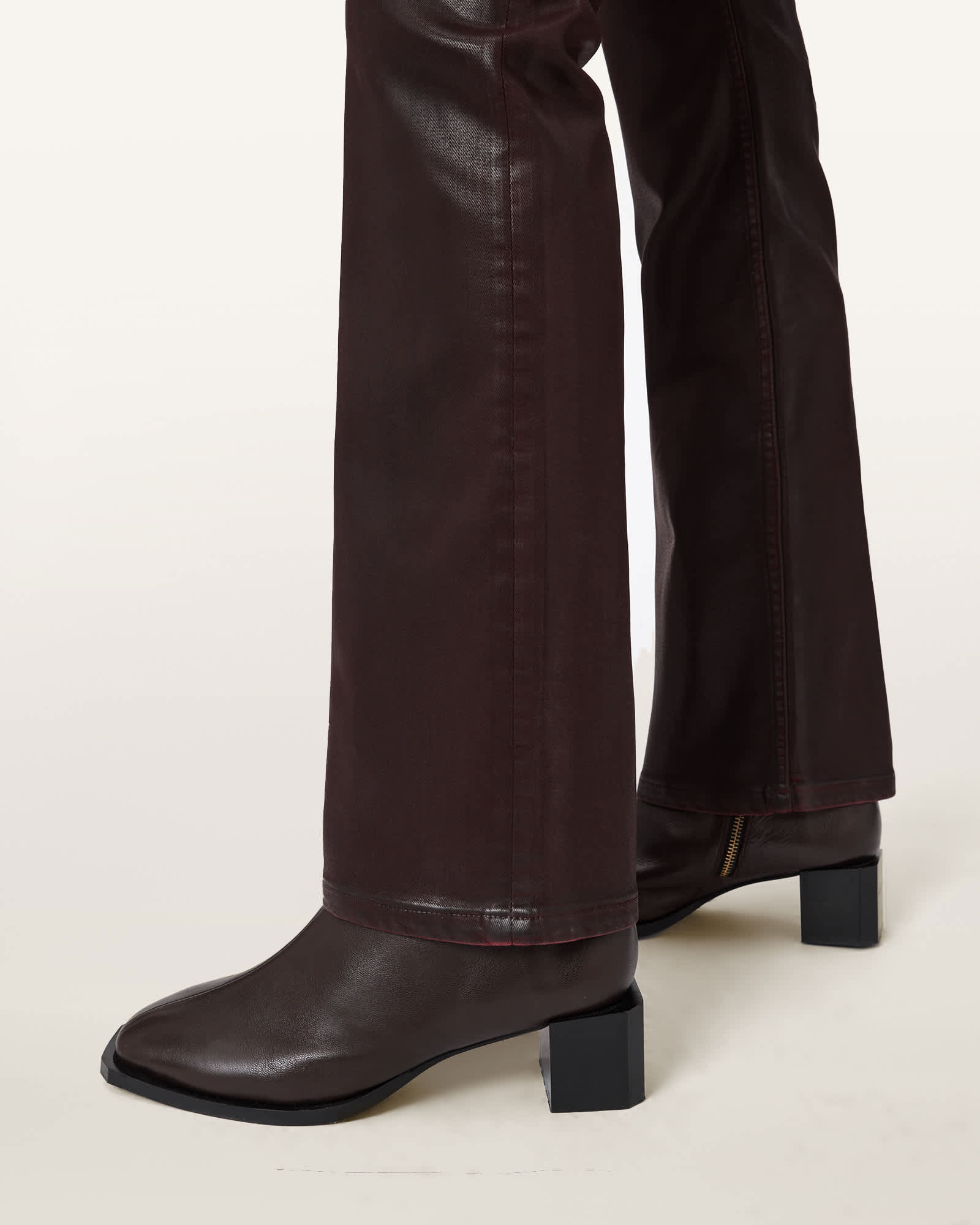 AllSaints Haldan Coated Bootcut Jeans,, Burgundy Red