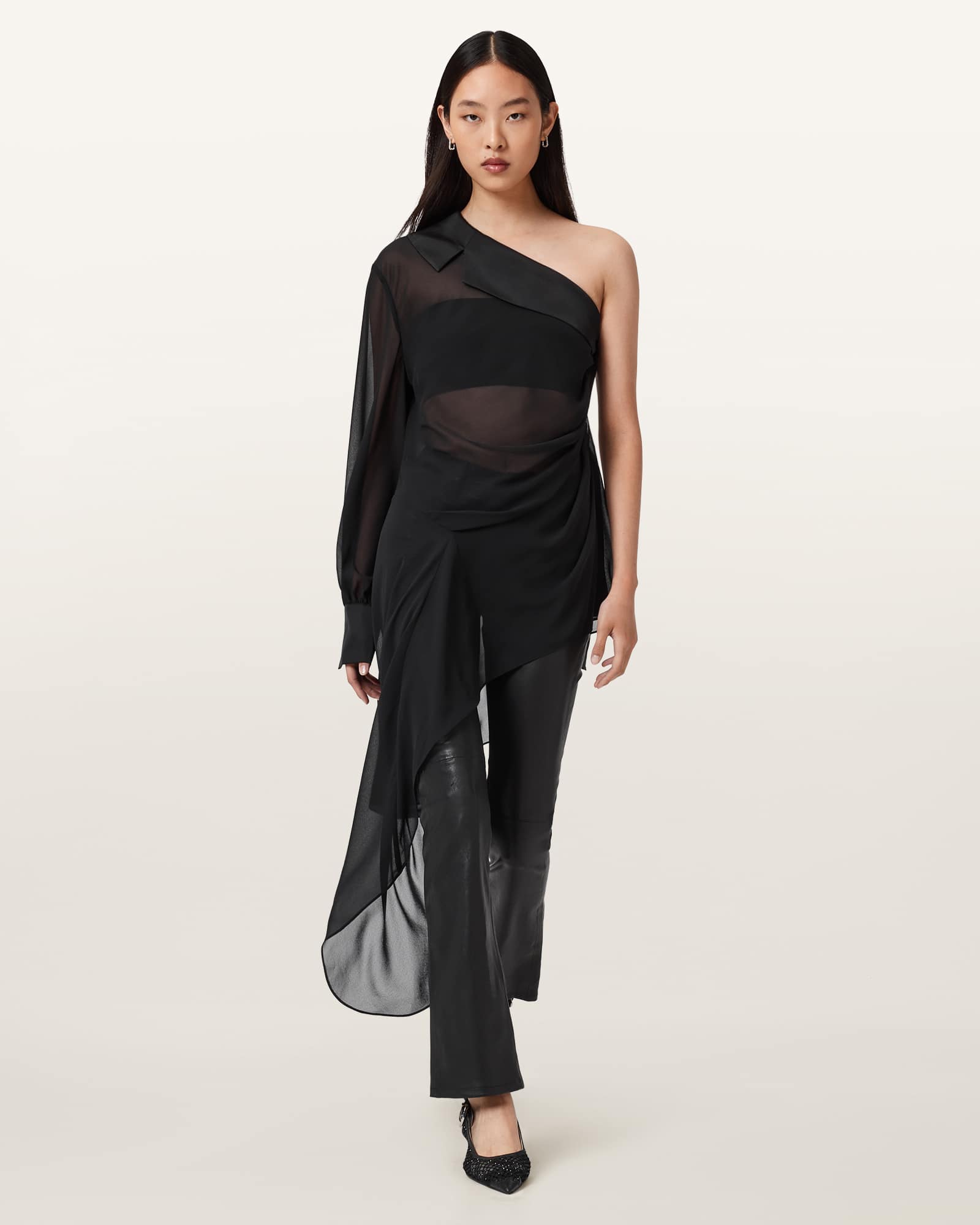 AllSaints Anaya Asymmetric Sheer Top,, Black | ricciano DEUTSCHLAND