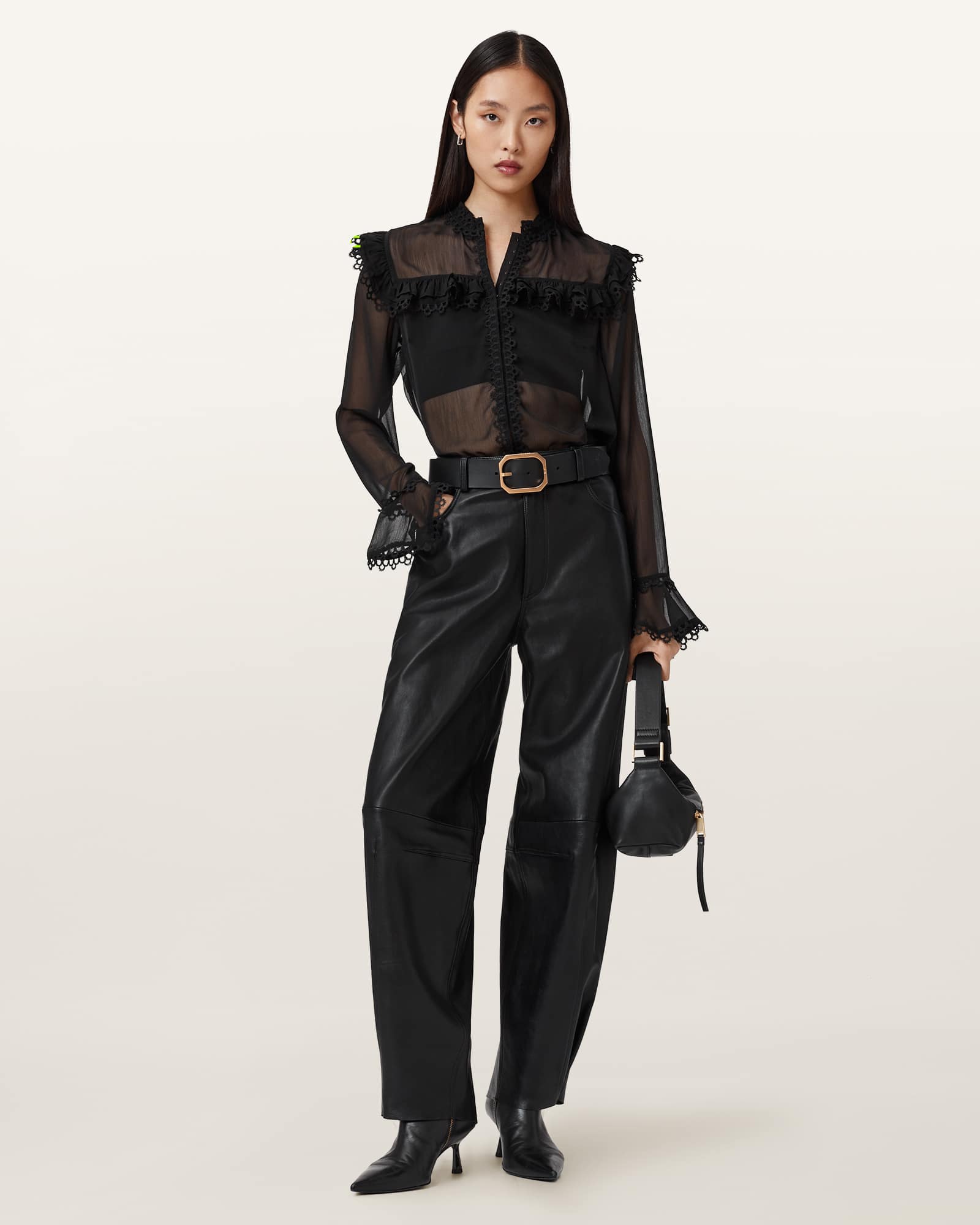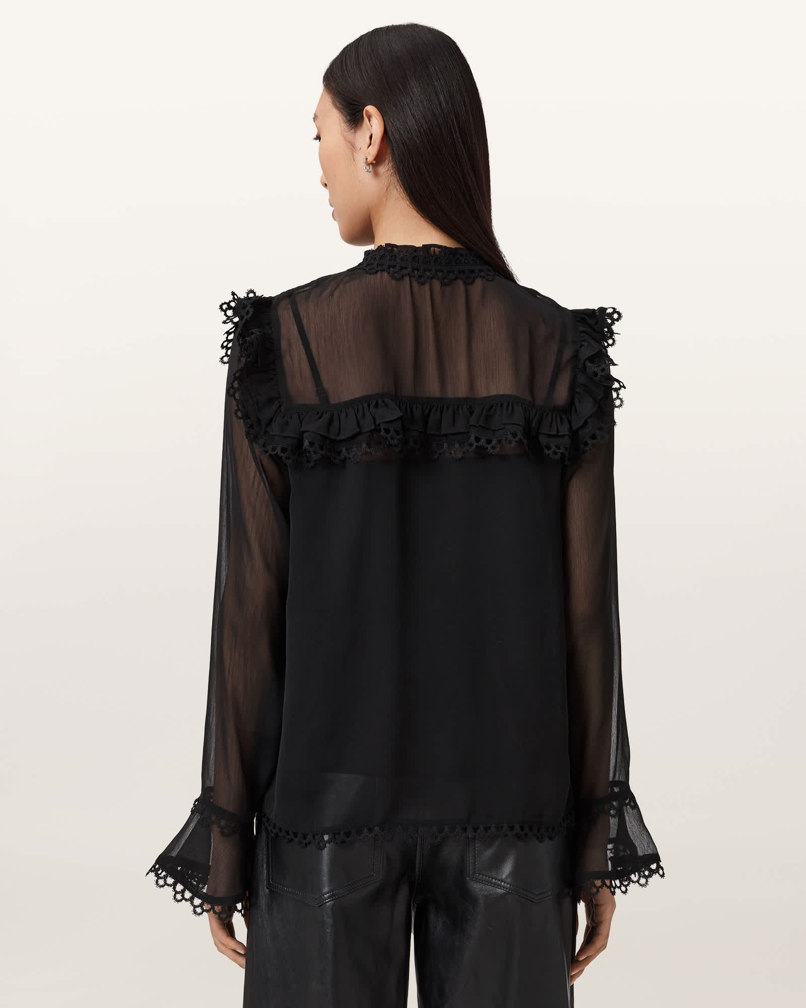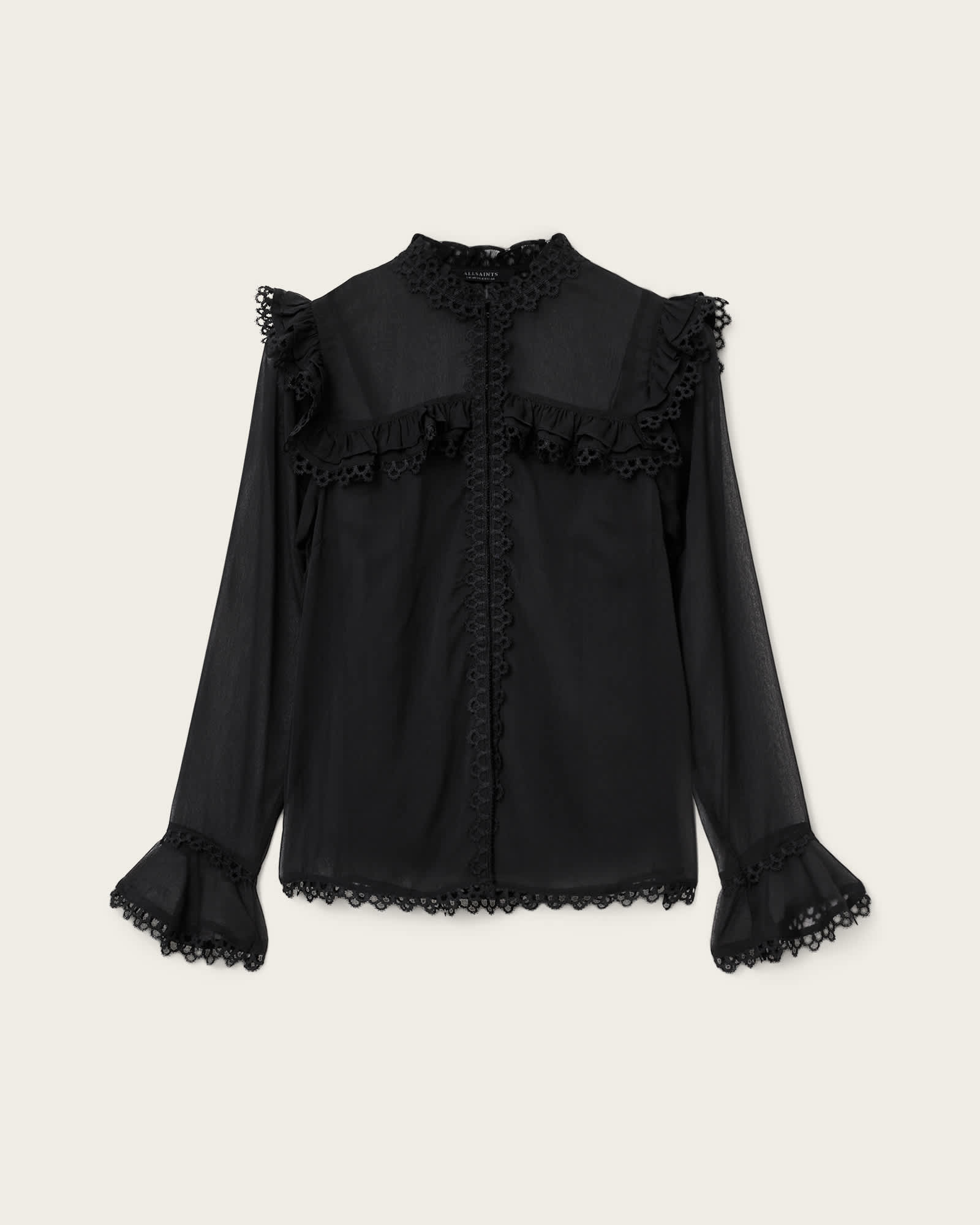 AllSaints Ciara Sheer Lace Shirt,, Black | ricciano DEUTSCHLAND