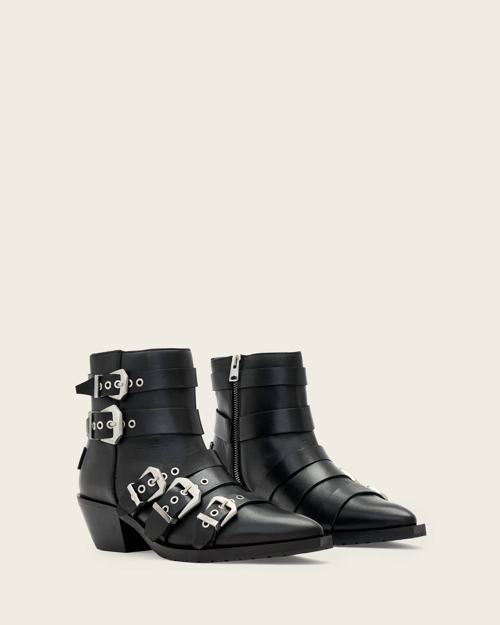 AllSaints Jane Leather Buckle Boots,, Black | ricciano DEUTSCHLAND