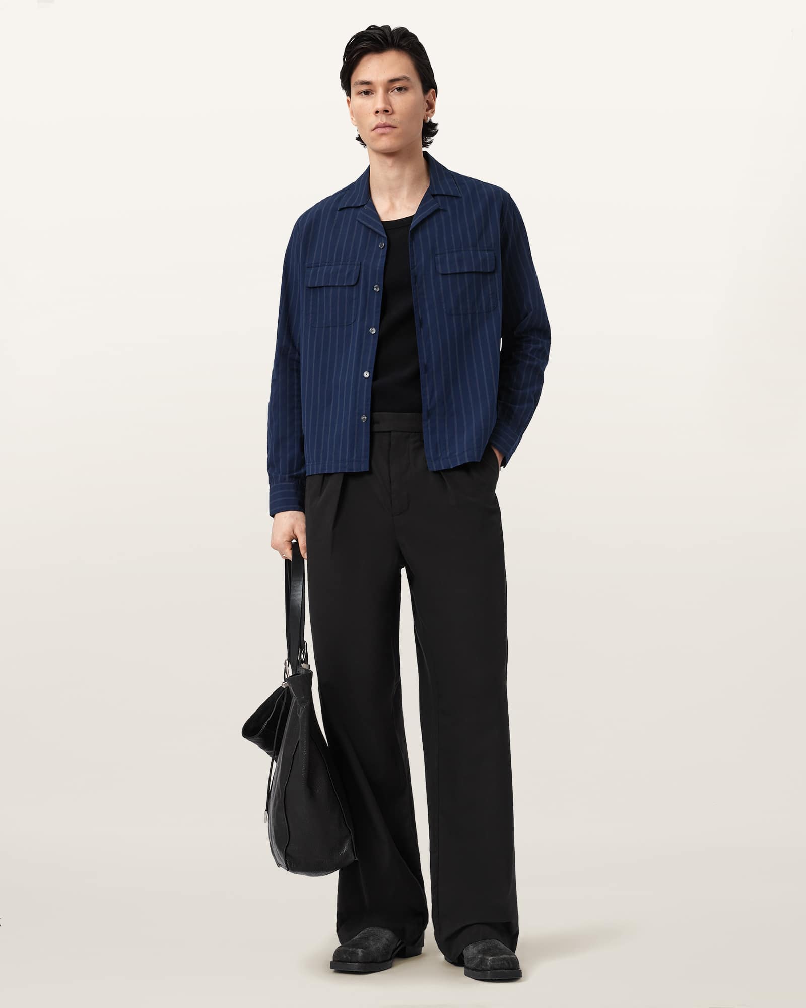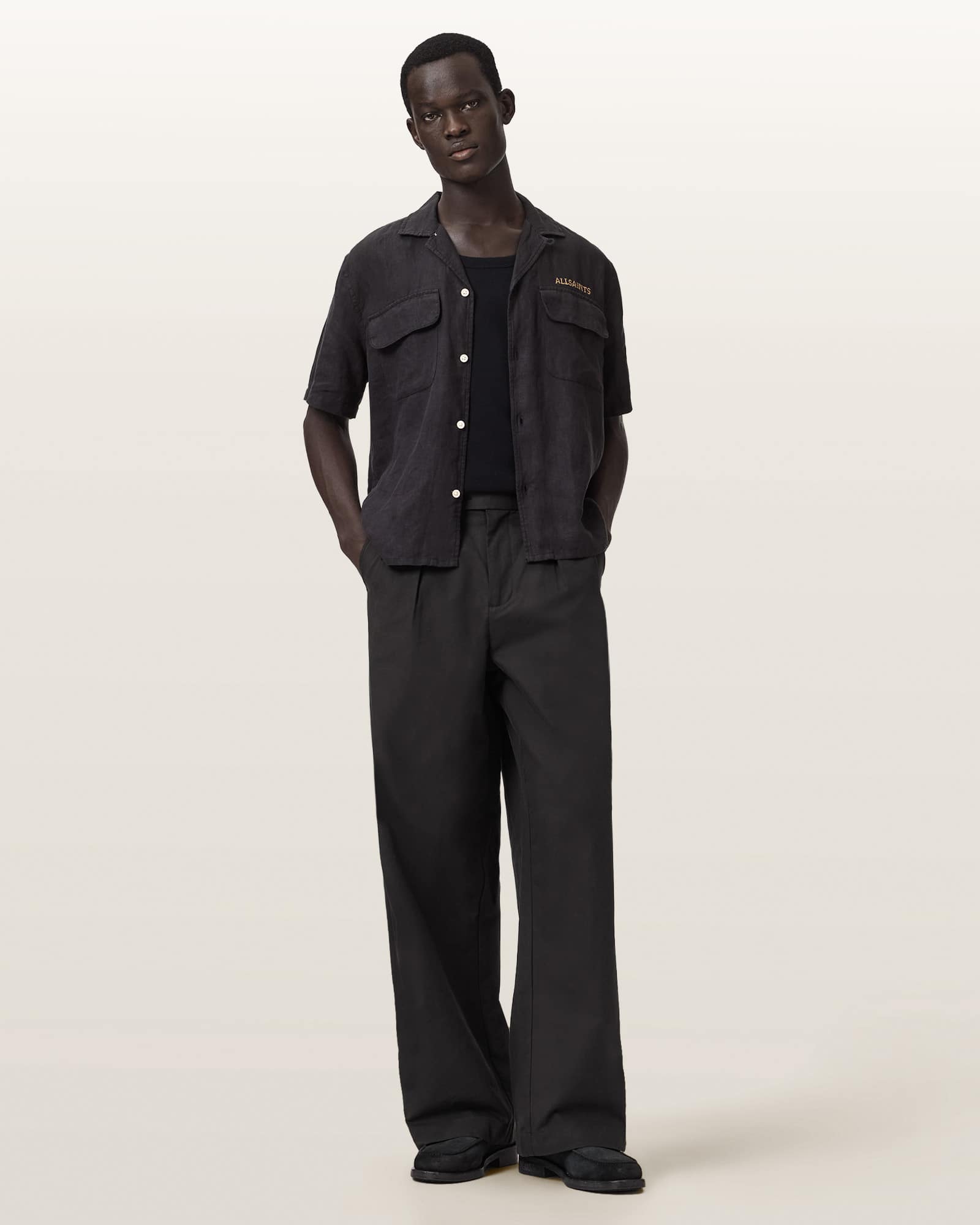 AllSaints Conway Wide Leg Pleated Trousers,, Black