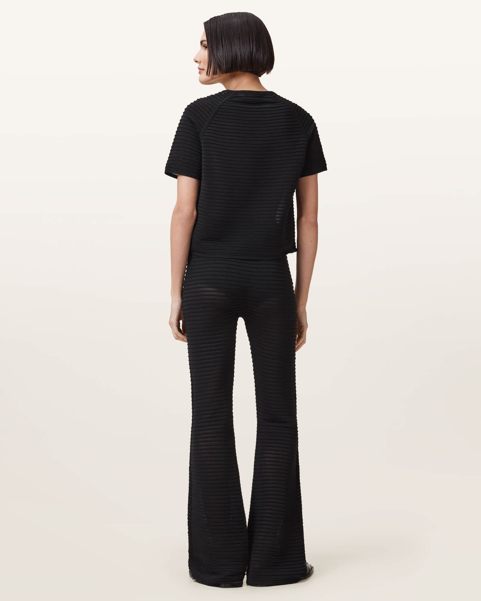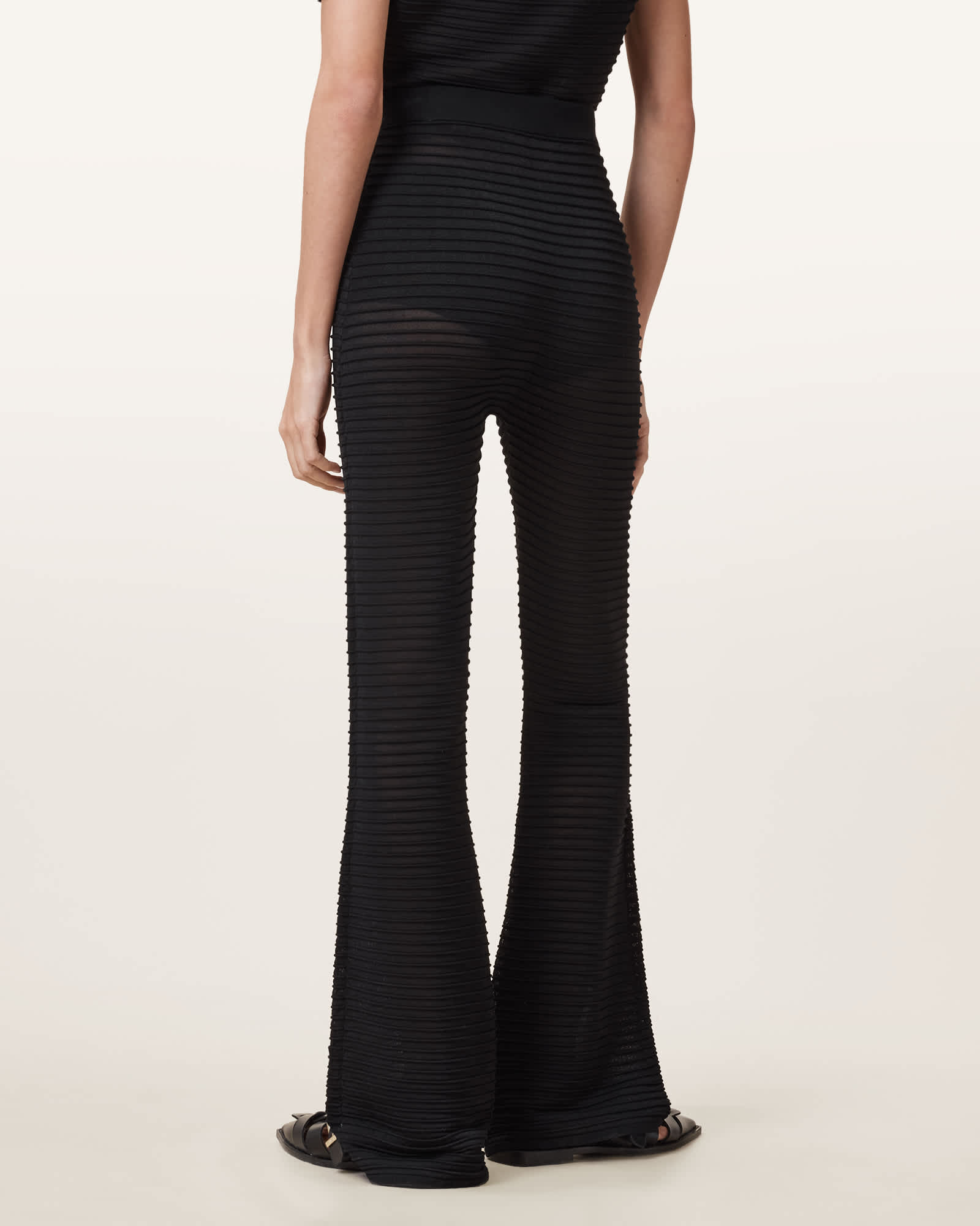 AllSaints Alice Sheer Knit Flared Trousers,, Black | ricciano CANADA
