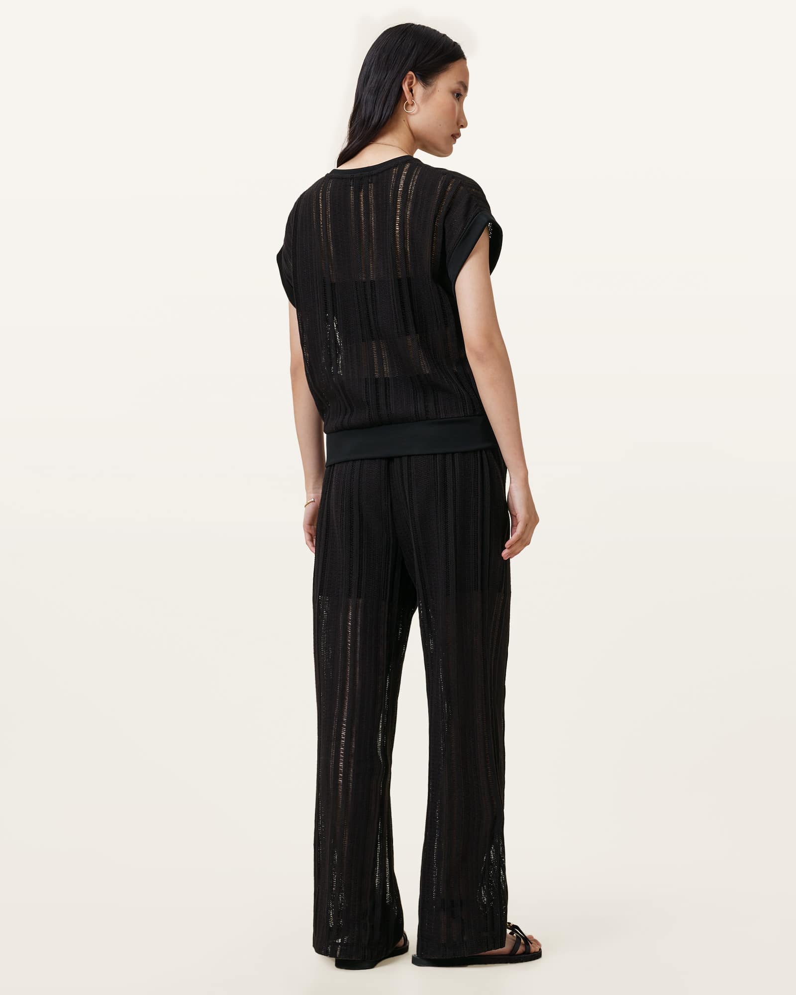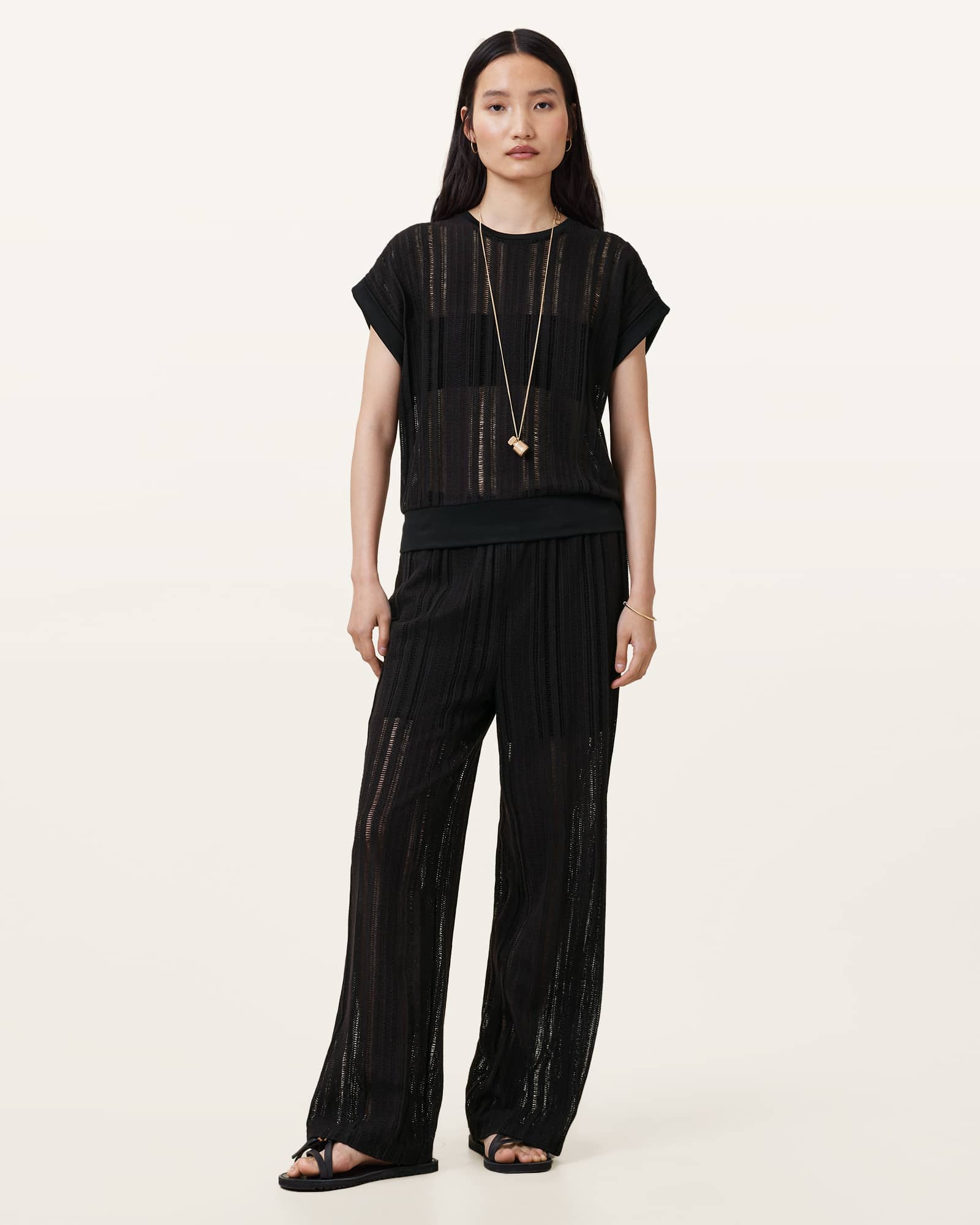 AllSaints Giana Crochet Ladder Wide Leg Trousers,, Black