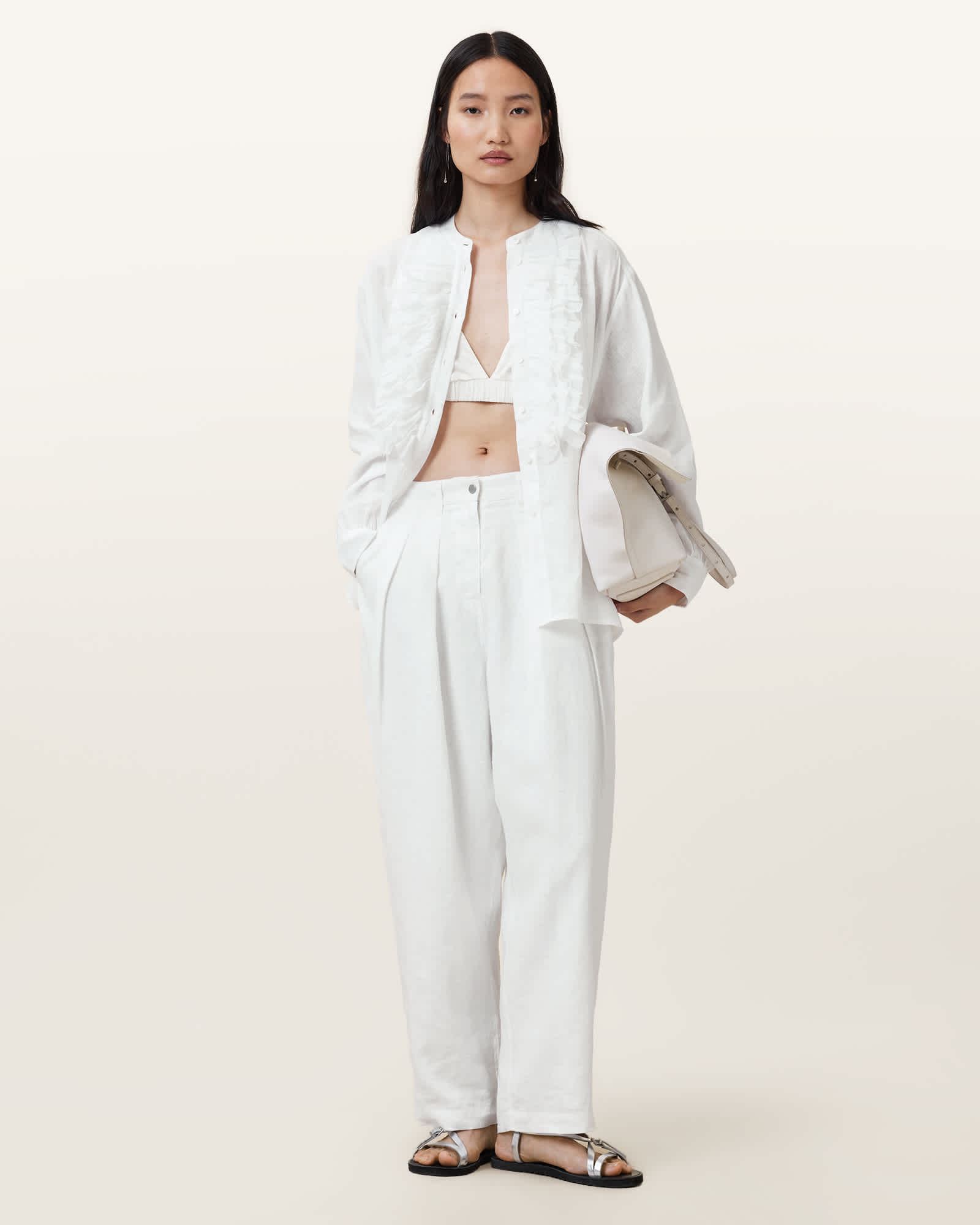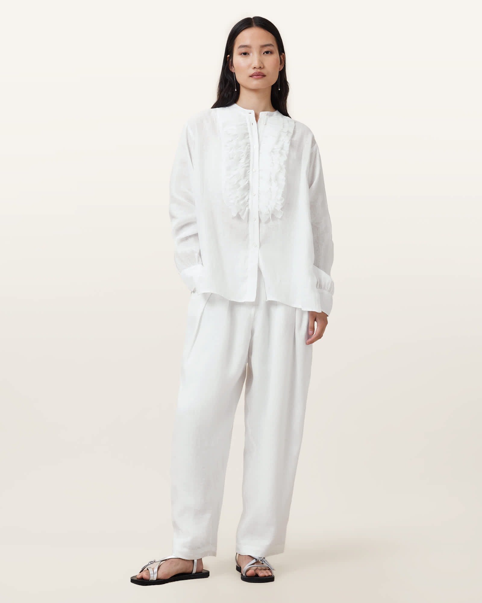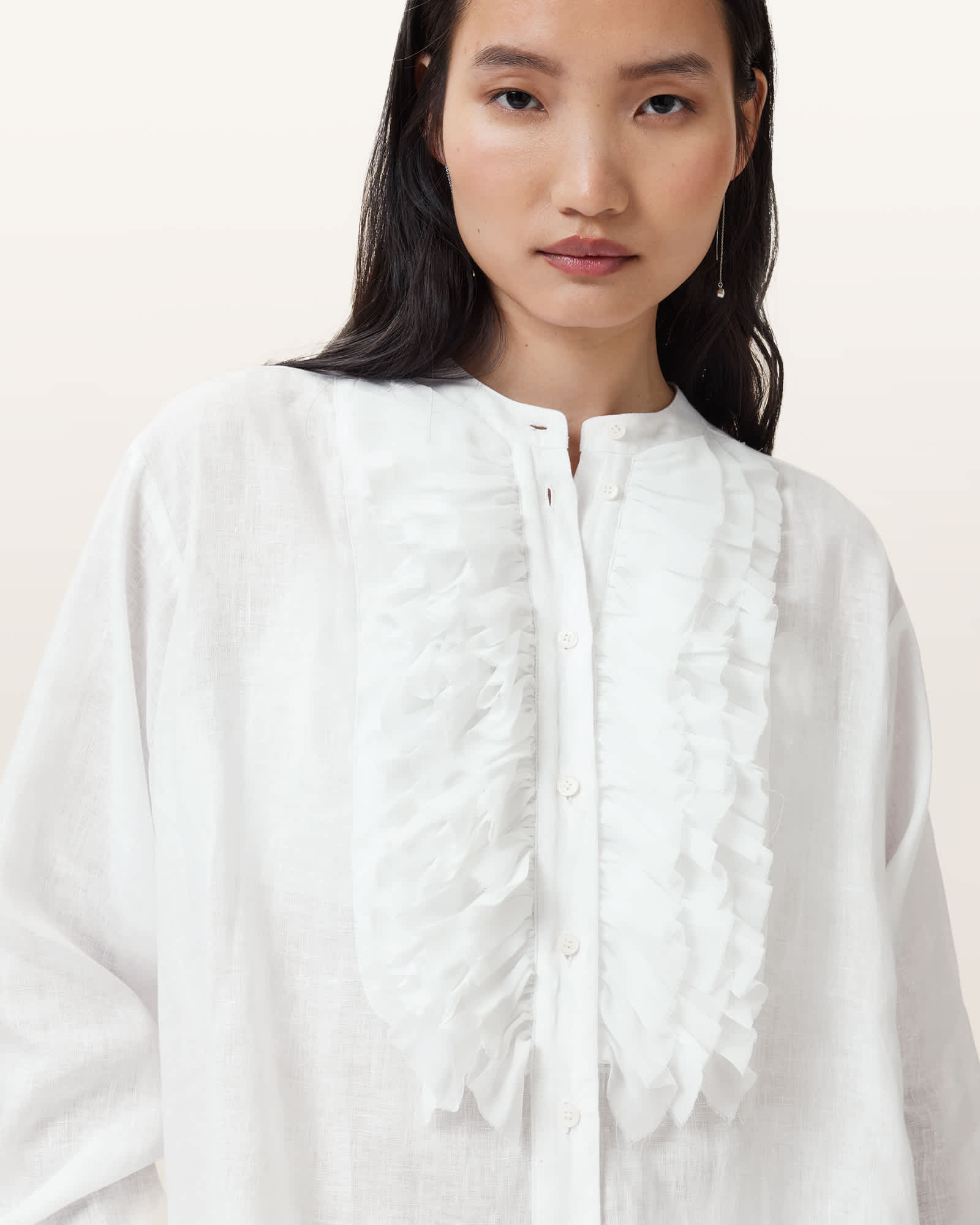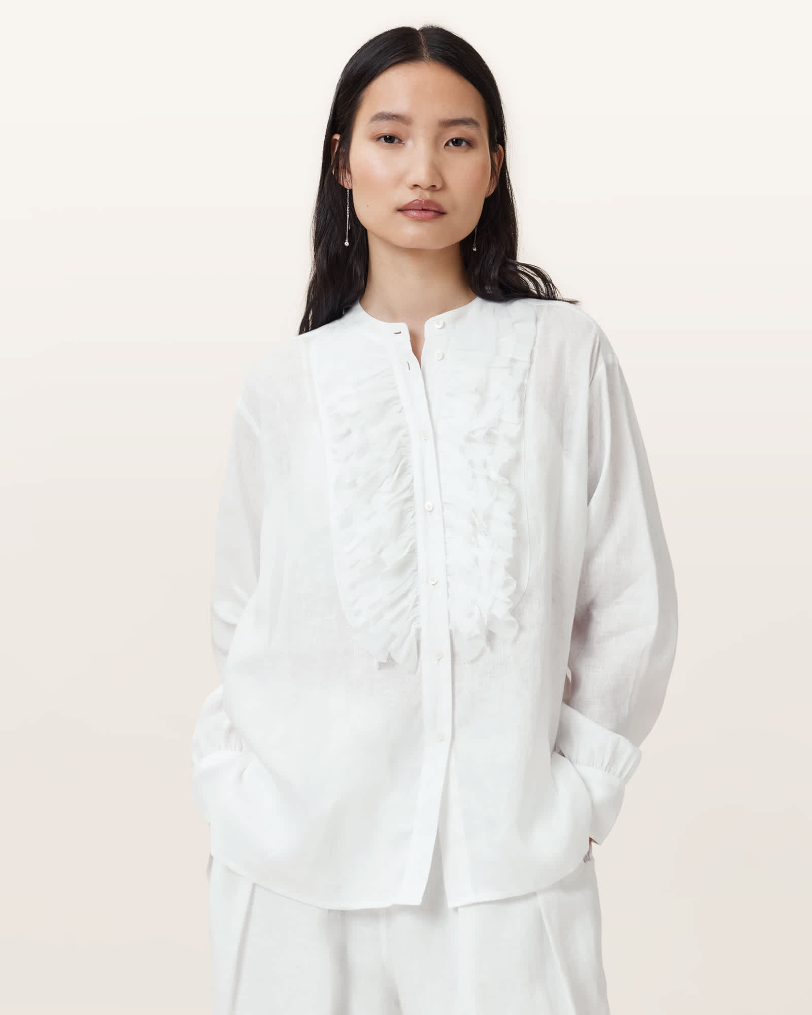 AllSaints Cassia Long Sleeve Linen Shirt,, Chalk White