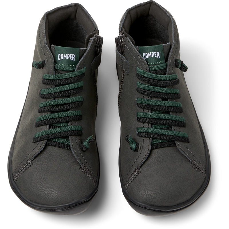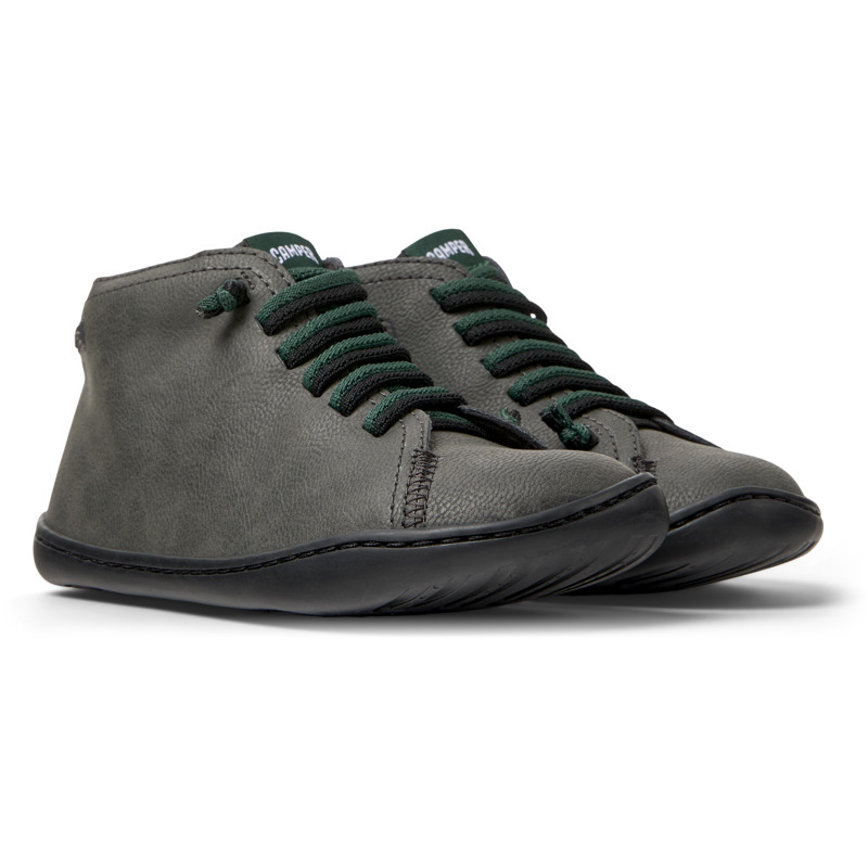 CAMPER - Grijze leren kinder-enkelboots van 60% gerecycled kalfsleer, met elastische veters, EVA-voetbed en rubberen buitenzool.