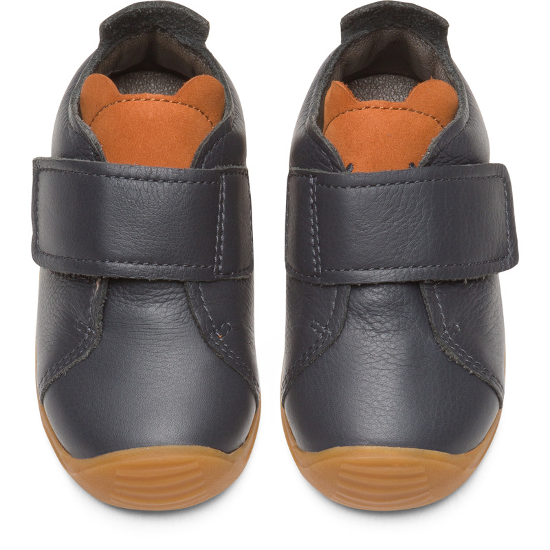 CAMPER - Donkergrijze TWINS-sneaker voor jongens in volnerfleer en nubuckleer met klittenbandsluiting.