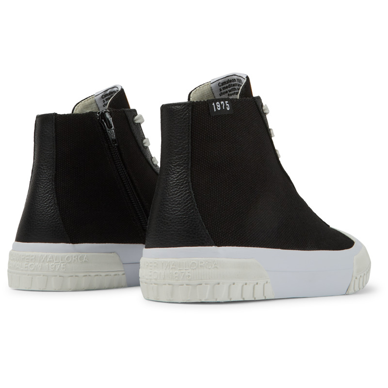 CAMPER - Zwarte canvas damesboots van BCI-gecertificeerd katoen met buitenzool van 23% gerecycled rubber en 40% natuurlijk rubber.