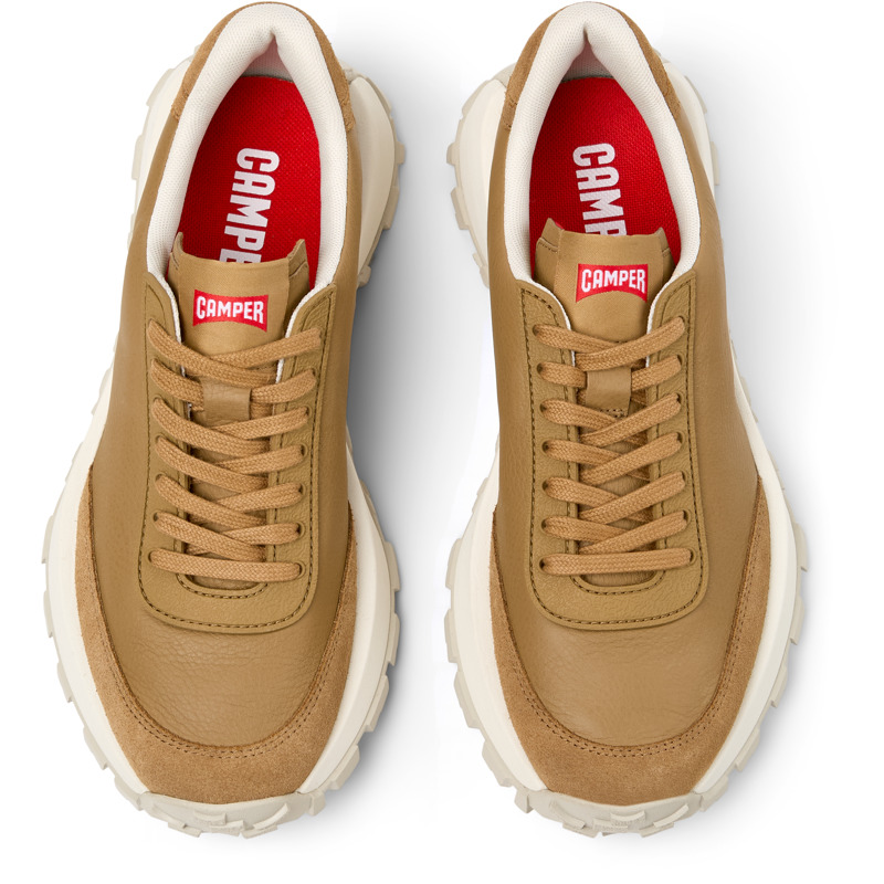 CAMPER - Bruine leer en nubuck damessneakers met OrthoLite® Recycled™ uitneembaar voetbed en Vibram® buitenzool (70% EVA, 30% rubber) Onze Drift Trail is een combinatie van high-performance innovatie en vintage esthetiek.