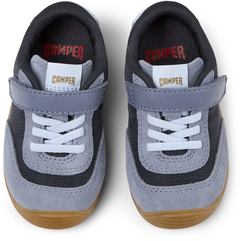 CAMPER - Blauwe kindersneakers van textiel en nubuck met klittenbandsluiting en rubberen buitenzool.