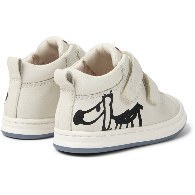 CAMPER - Wit-zwarte leren kindersneakers met klittenbandsluiting, uitneembaar OrthoLite® Recycled™ voetbed en rubberen buitenzool.