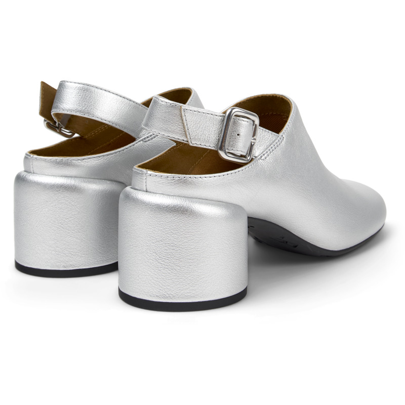 CAMPER - Zilveren leren semi-open damesschoenen met OrthoLite® Recycled™ voetbed en ABS & TPU buitenzool.