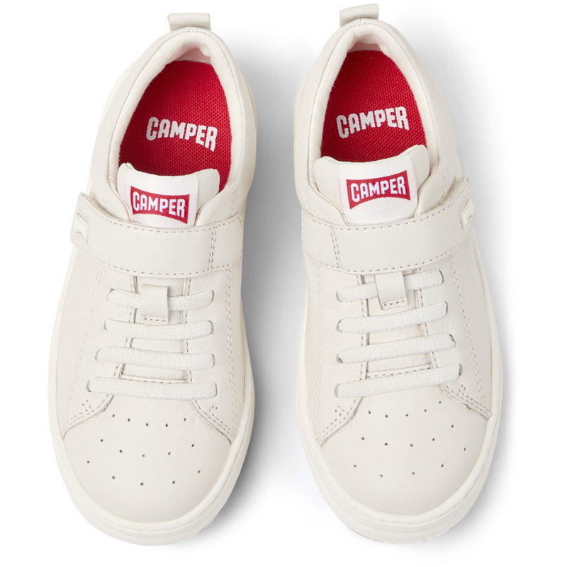 CAMPER - Witte leren kindersneakers met OrthoLite® Recycled™ voetbed, elastische veters, klittenband en rubberen buitenzool.