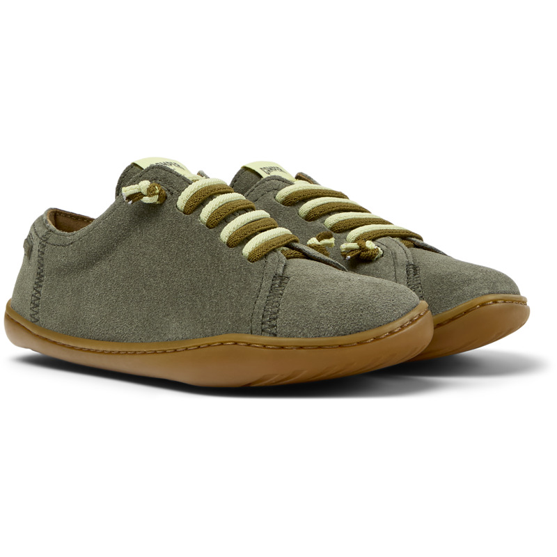 CAMPER - Groene nubuck kinderschoenen met elastische veters, EVA voetbed en gerecycled rubberen buitenzool (20% gerecycled).