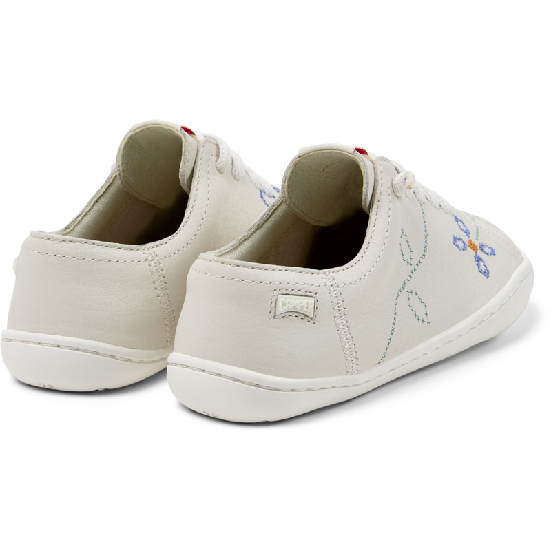 CAMPER - Witte leren kinderschoenen met EVA voetbed, elastische veters en rubberen buitenzool (20% gerecycled).