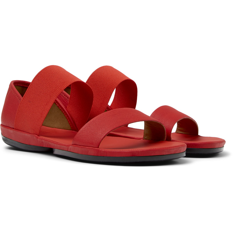 CAMPER - Rode leren damessandalen met PU voetbed en gerecycled rubber buitenzool (20% gerecycled).