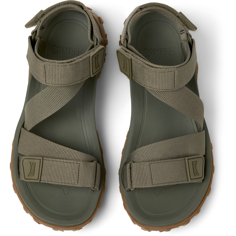 CAMPER - Groene herensandalen van gerecycled PET, met klittenband, EVA tussenzool en Vibram buitenzool.