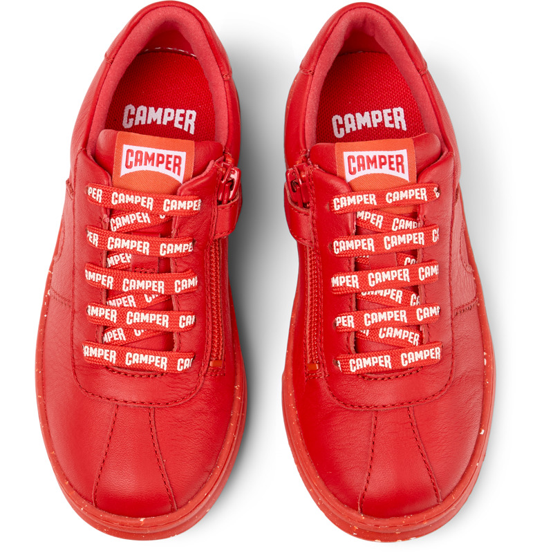 CAMPER - Rode leren kindersneakers met OrthoLite® Recycled™ voetbed, klittenband en rubberen buitenzool.
