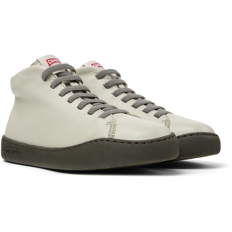 CAMPER - Grijze kalfsleren dames-sneakerbooties met OrthoLite® Recycled™ voetbed, elastische veters en EVA-buitenzool.