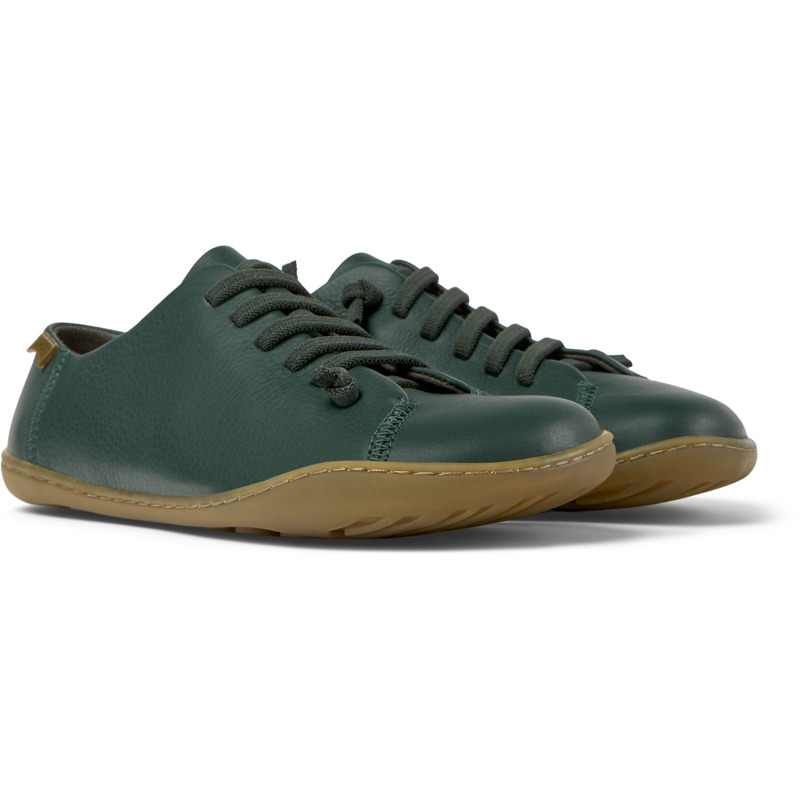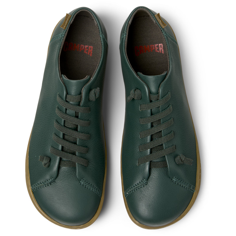 CAMPER - Groene damesschoenen van kalfsleer, met PU-voetbed, elastische veters en rubberen buitenzool.