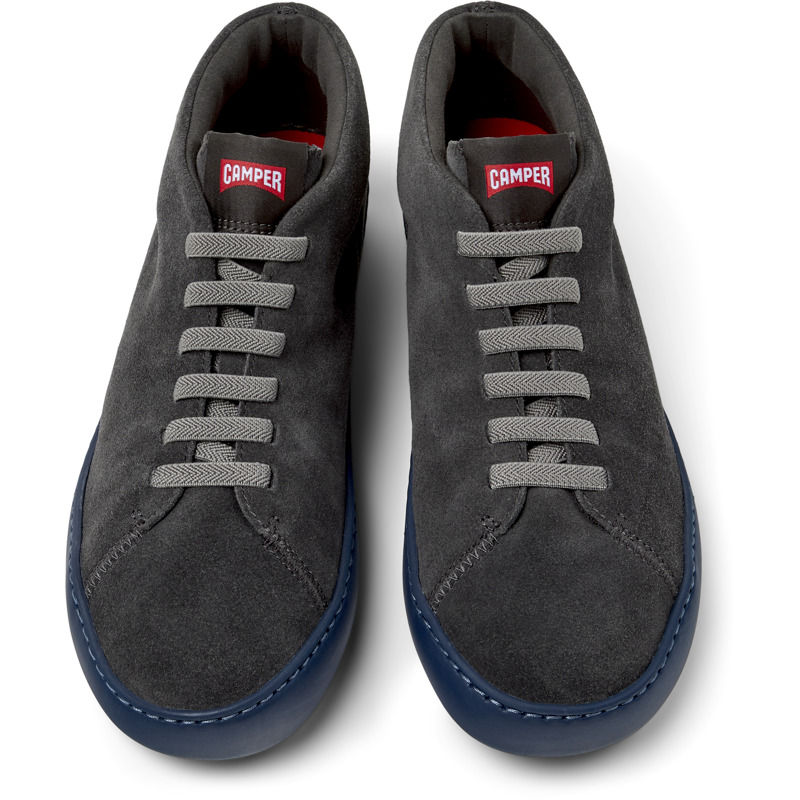 CAMPER - Grijze kalfsleren suède heren-sneakerboots met OrthoLite® Recycled™ voetbed, elastische veters en EVA-buitenzool (20% gerecycled).