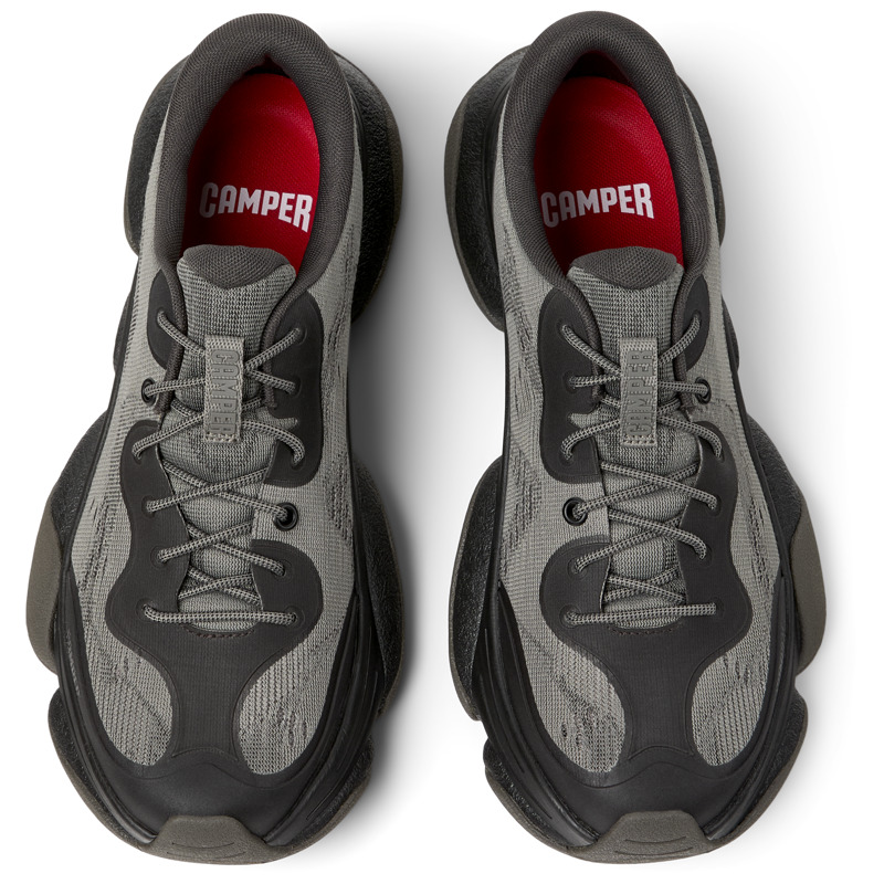 CAMPER - Grijs-zwarte vereenvoudigde technische herensneakers van gerecycled materiaal met OrthoLite® Recycled™ voetbed, ReXarge-tussenzool en Vibram Ecostep-buitenzool (30% gerecyled).