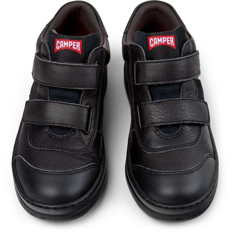 CAMPER - Zwarte kinder-sneakerbooties van kalfsleer en nubuck, met OrthoLite® Recycled™ voetbed, klittenbandsluiting en Runner-buitenzool.