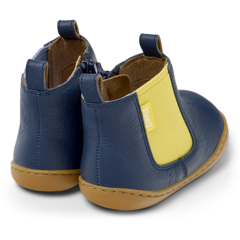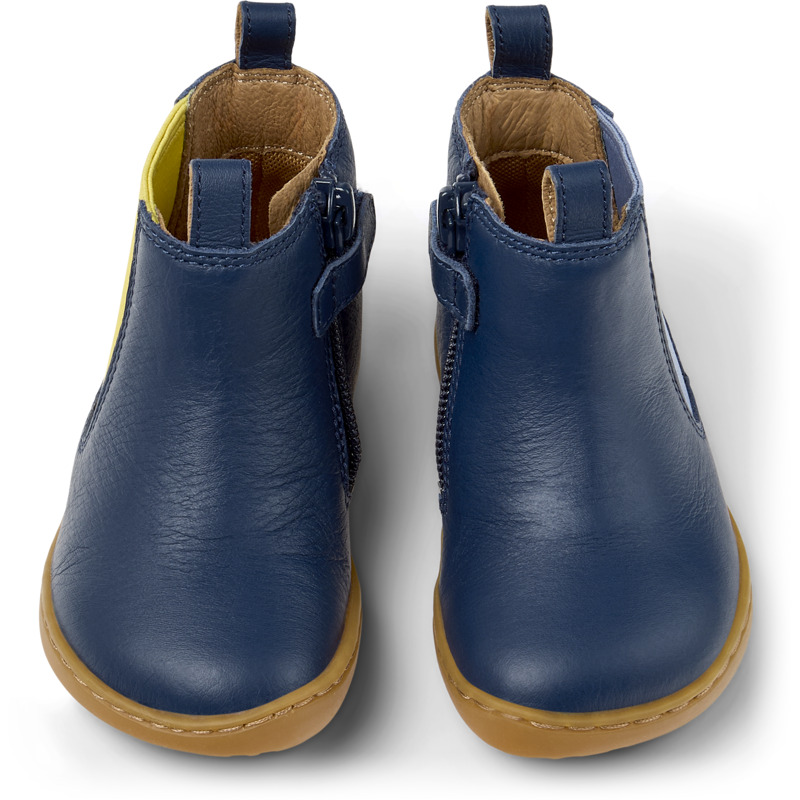 CAMPER - Blauwe kinder-enkelboots van kalfsleer, met uitneembaar EVA-voetbed en rubberen buitenzool (20% gerecycled).
