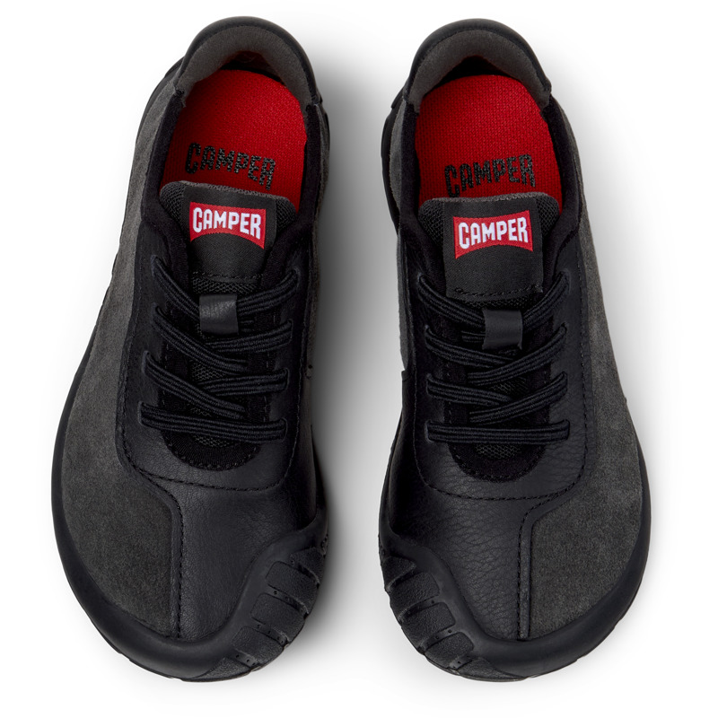CAMPER - Zwart met grijze kalfsleren nubuck kindersneakers met OrthoLite® Recycled™ voetbed, elastische veters en gerecyclede rubberen buitenzool (20% gerecycled).