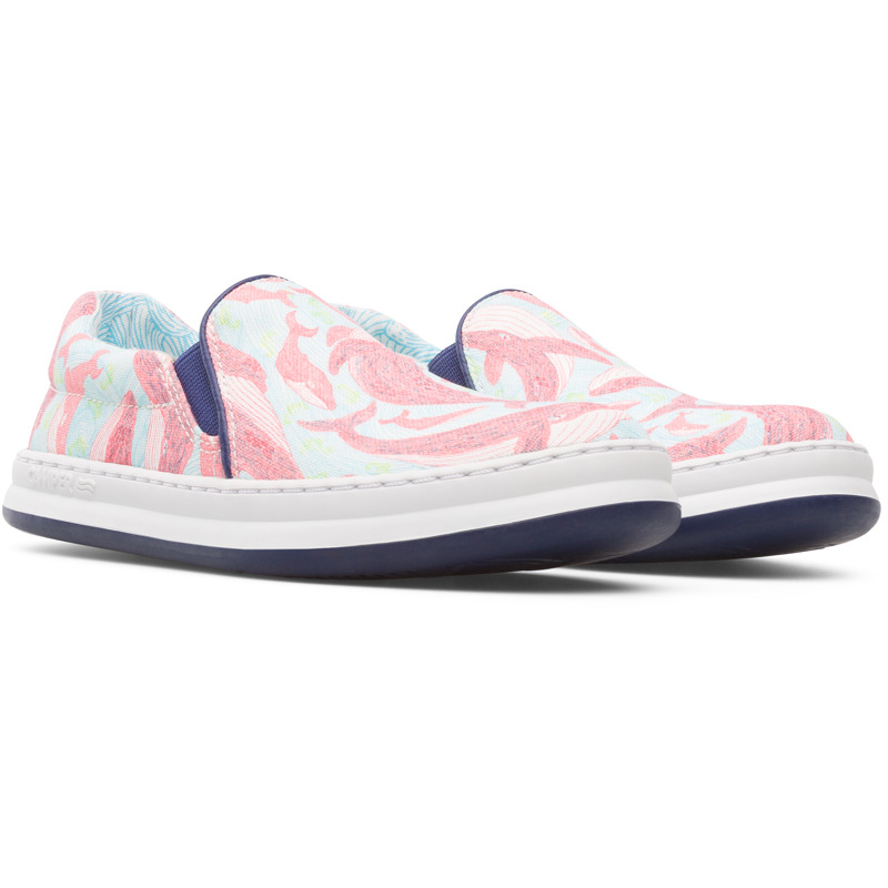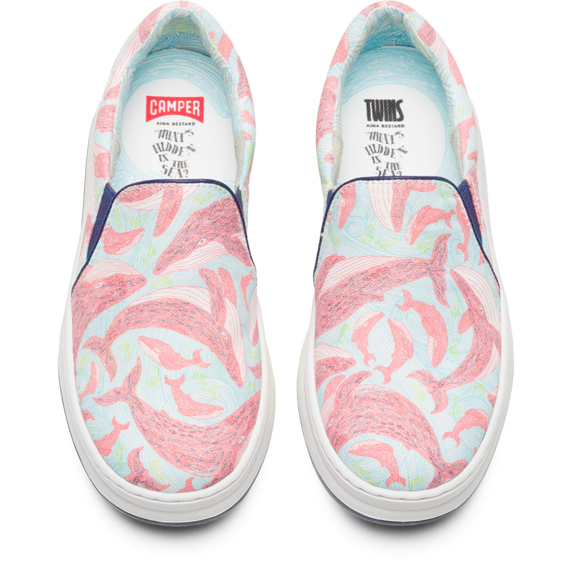 CAMPER - Meerkleurige geprint-textielen meidenmoccasin met gestikte rubberen buitenzool Kunstenaar en auteur Aina Bestard werkt samen met Camper for Kids om een speciale TWINS-collectie te creëren, geïnspireerd door haar kinderboek Wat is er verborgen in de zee? Elk paar wordt geleverd met een speciale gekleurde bril die kleintjes in staat stelt om iets dieper te duiken en de geheimen van de zee te ontdekken.