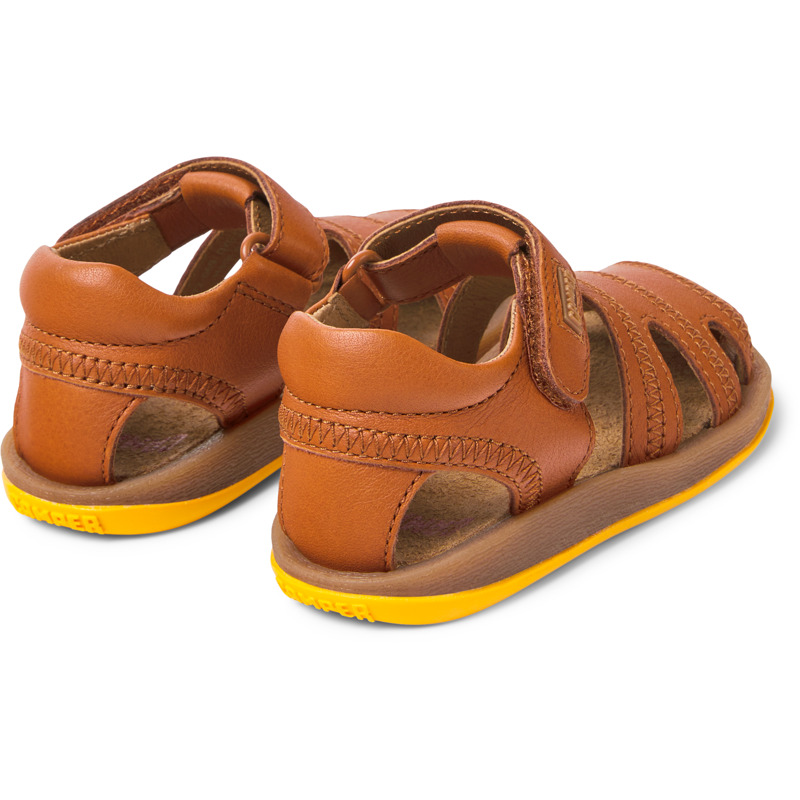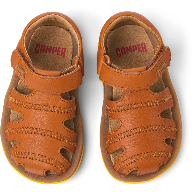 CAMPER - Bruine leren kindersandalen met klittenbandsluiting en rubberen buitenzool (20% gerecycled).